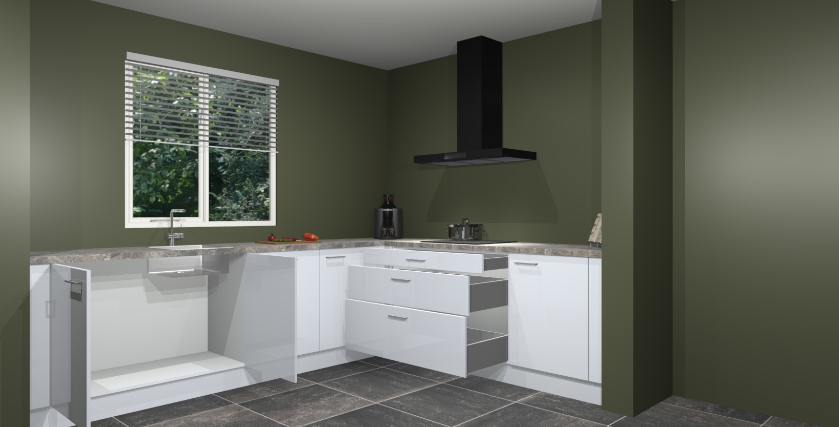 - Bij een hoekwerkblad zijn de hoeken in gevreesd en op maat gemaakt