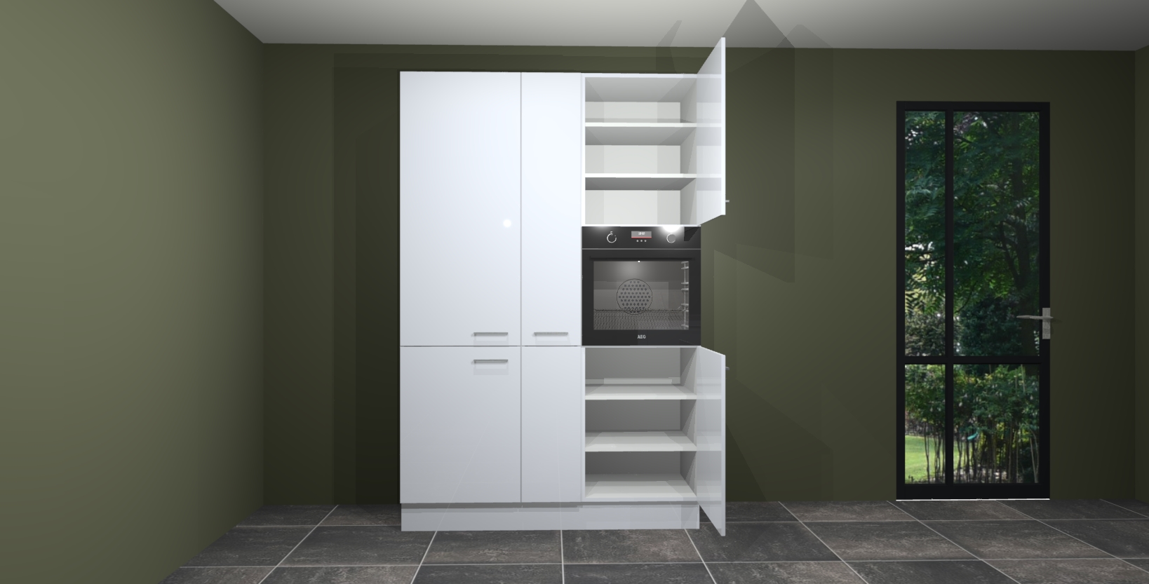 Met een modern, tijdloos design en ruime opslagruimte, zult u zich in no-time thuis voelen in uw nieuwe keuken. Uw leven wordt eenvoudiger met de soft-close deuren die voor het ultieme stille comfort zorgen - geen geluid dat u stoort terwijl u kookt. Ook is de keuken voorzien van 5 ingebouwde apparaten: een oven, inductie kookplaat, afzuigkap, vaatwasser en koelkast. Deze kunnen gemakkelijk na bestelling worden bijgewerkt naar AEG - waardoor uw luxe ervaring compleet is.