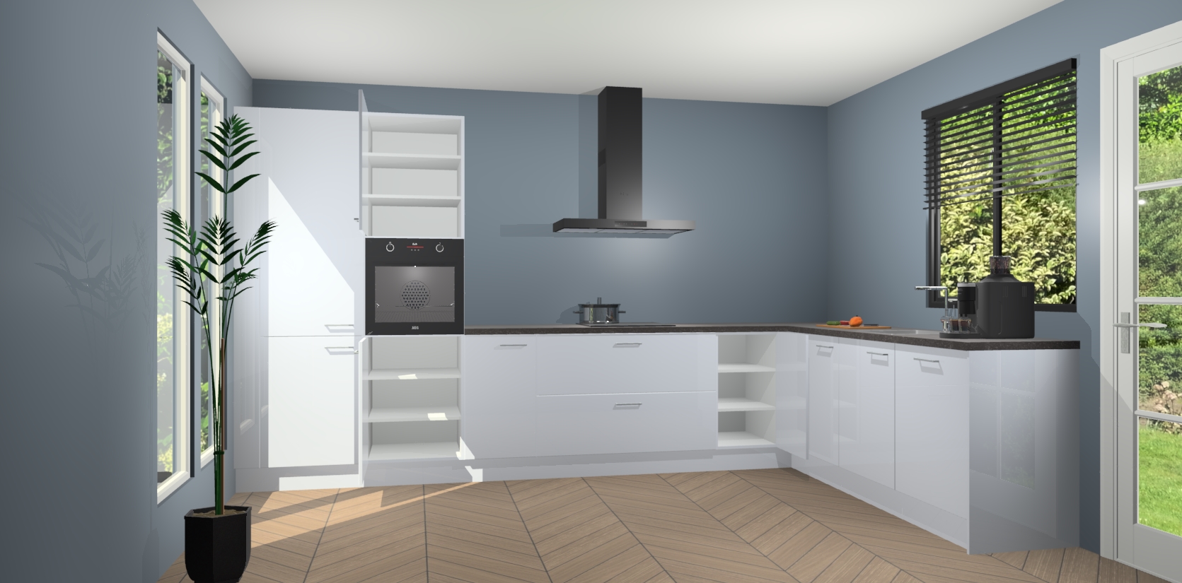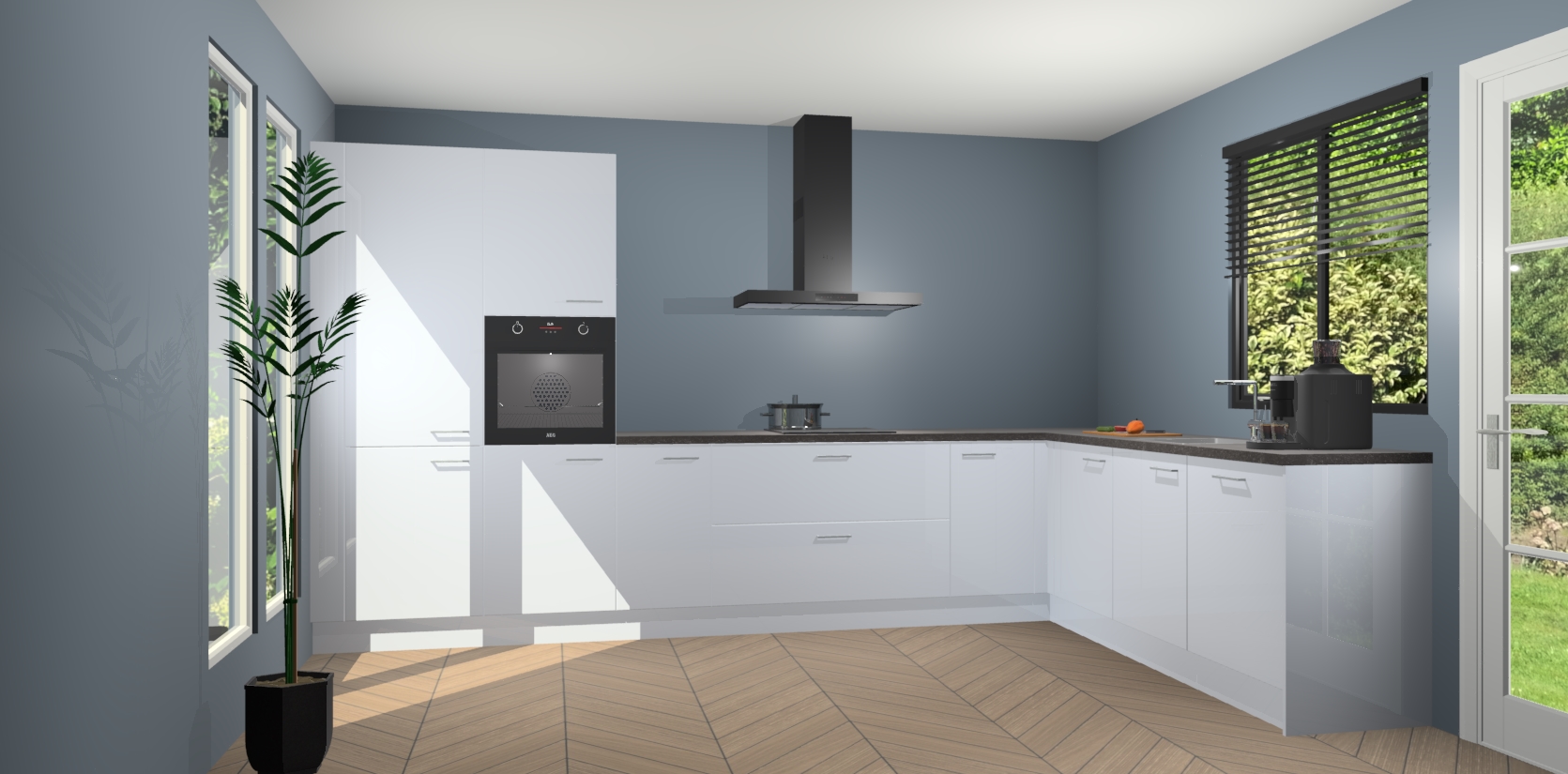 Met een modern, tijdloos design en ruime opslagruimte, zult u zich in no-time thuis voelen in uw nieuwe keuken. Uw leven wordt eenvoudiger met de soft-close deuren die voor het ultieme stille comfort zorgen - geen geluid dat u stoort terwijl u kookt. Ook is de keuken voorzien van 5 ingebouwde apparaten: een oven, inductie kookplaat, afzuigkap, vaatwasser en koelkast. Deze kunnen gemakkelijk na bestelling worden bijgewerkt naar AEG - waardoor uw luxe ervaring compleet is.