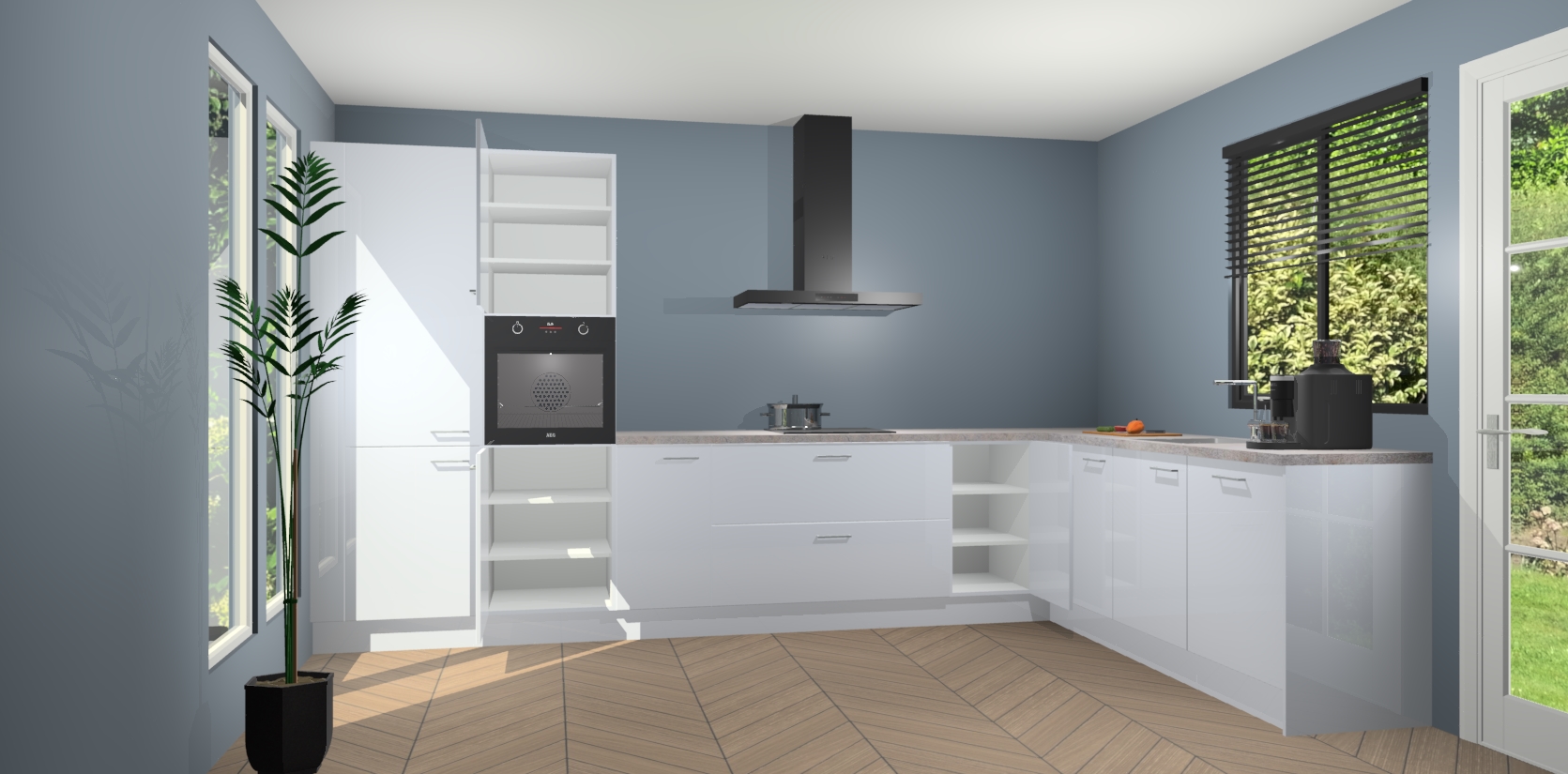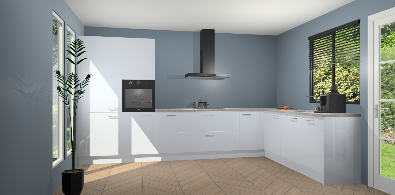 Met een modern, tijdloos design en ruime opslagruimte, zult u zich in no-time thuis voelen in uw nieuwe keuken. Uw leven wordt eenvoudiger met de soft-close deuren die voor het ultieme stille comfort zorgen - geen geluid dat u stoort terwijl u kookt. Ook is de keuken voorzien van 5 ingebouwde apparaten: een oven, inductie kookplaat, afzuigkap, vaatwasser en koelkast. Deze kunnen gemakkelijk na bestelling worden bijgewerkt naar AEG - waardoor uw luxe ervaring compleet is.