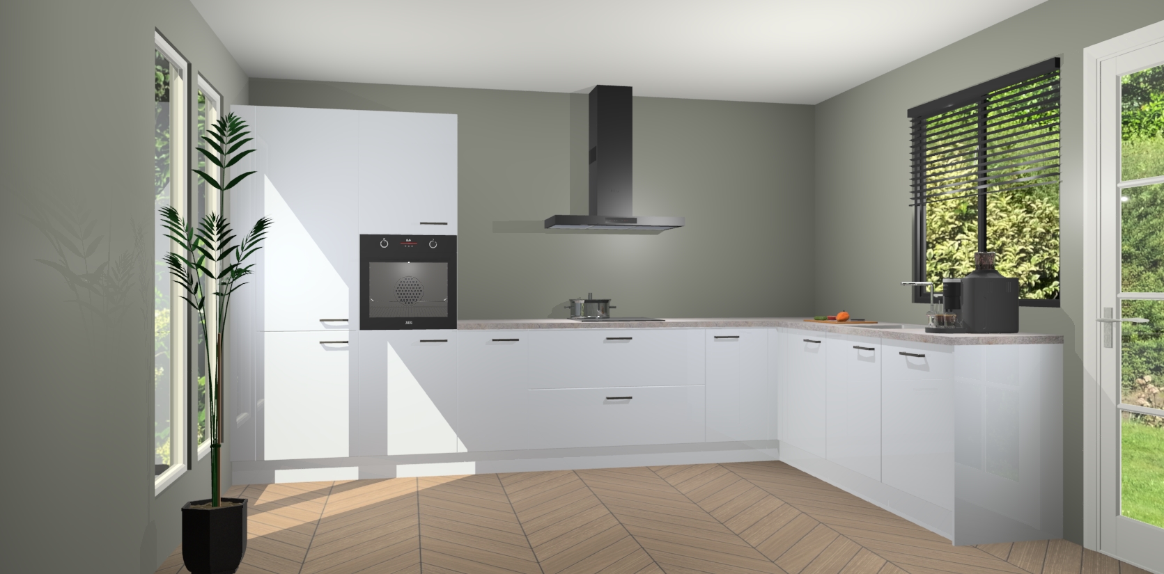 Met een modern, tijdloos design en ruime opslagruimte, zult u zich in no-time thuis voelen in uw nieuwe keuken. Uw leven wordt eenvoudiger met de soft-close deuren die voor het ultieme stille comfort zorgen - geen geluid dat u stoort terwijl u kookt. Ook is de keuken voorzien van 5 ingebouwde apparaten: een oven, inductie kookplaat, afzuigkap, vaatwasser en koelkast. Deze kunnen gemakkelijk na bestelling worden bijgewerkt naar AEG - waardoor uw luxe ervaring compleet is.