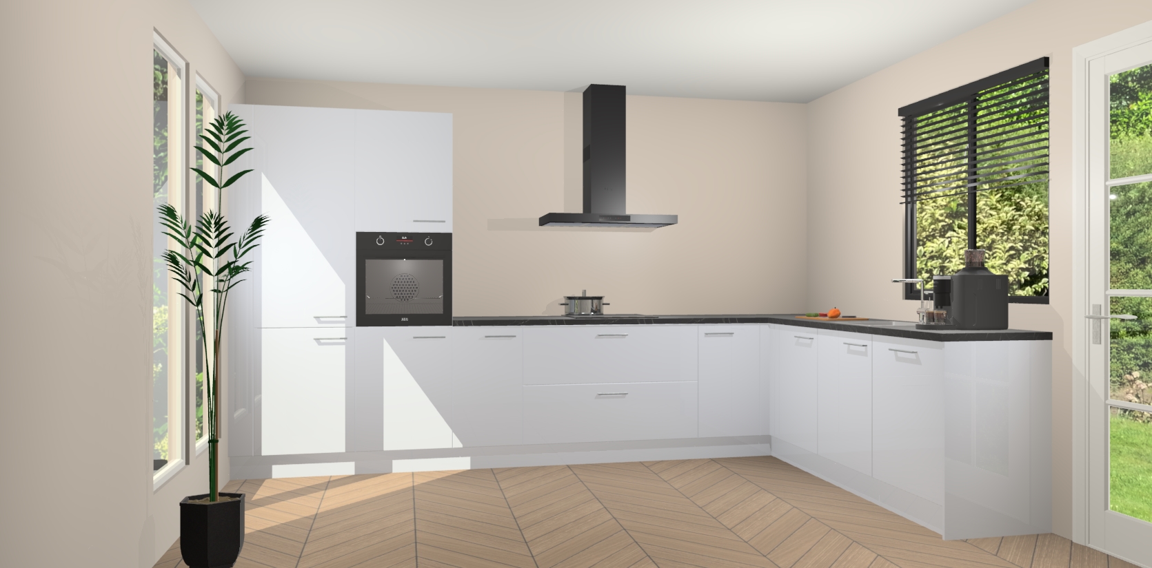 Met een modern, tijdloos design en ruime opslagruimte, zult u zich in no-time thuis voelen in uw nieuwe keuken. Uw leven wordt eenvoudiger met de soft-close deuren die voor het ultieme stille comfort zorgen - geen geluid dat u stoort terwijl u kookt. Ook is de keuken voorzien van 5 ingebouwde apparaten: een oven, inductie kookplaat, afzuigkap, vaatwasser en koelkast. Deze kunnen gemakkelijk na bestelling worden bijgewerkt naar AEG - waardoor uw luxe ervaring compleet is.
