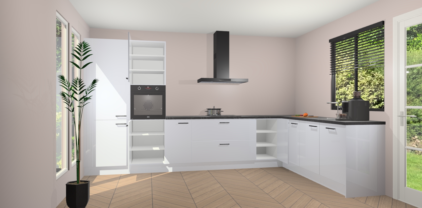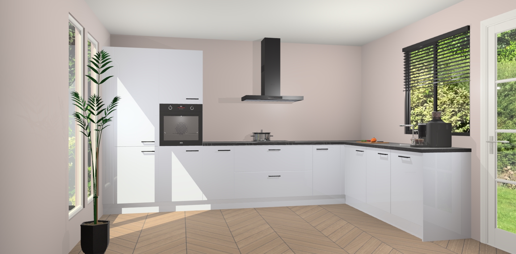 Met een modern, tijdloos design en ruime opslagruimte, zult u zich in no-time thuis voelen in uw nieuwe keuken. Uw leven wordt eenvoudiger met de soft-close deuren die voor het ultieme stille comfort zorgen - geen geluid dat u stoort terwijl u kookt. Ook is de keuken voorzien van 5 ingebouwde apparaten: een oven, inductie kookplaat, afzuigkap, vaatwasser en koelkast. Deze kunnen gemakkelijk na bestelling worden bijgewerkt naar AEG - waardoor uw luxe ervaring compleet is.