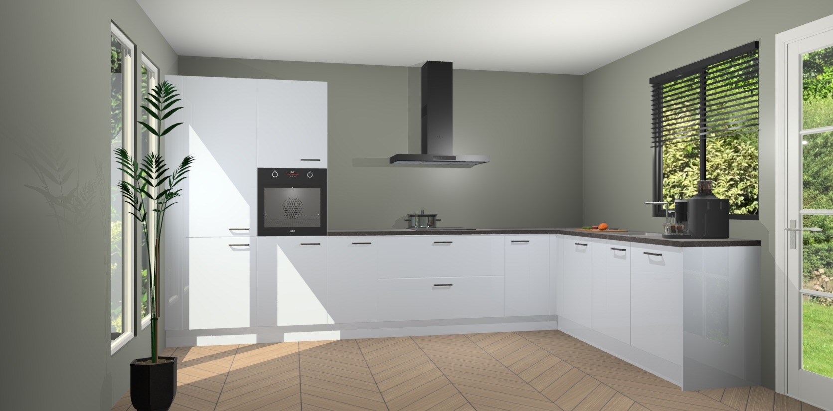 Met een modern, tijdloos design en ruime opslagruimte, zult u zich in no-time thuis voelen in uw nieuwe keuken. Uw leven wordt eenvoudiger met de soft-close deuren die voor het ultieme stille comfort zorgen - geen geluid dat u stoort terwijl u kookt. Ook is de keuken voorzien van 5 ingebouwde apparaten: een oven, inductie kookplaat, afzuigkap, vaatwasser en koelkast. Deze kunnen gemakkelijk na bestelling worden bijgewerkt naar AEG - waardoor uw luxe ervaring compleet is.