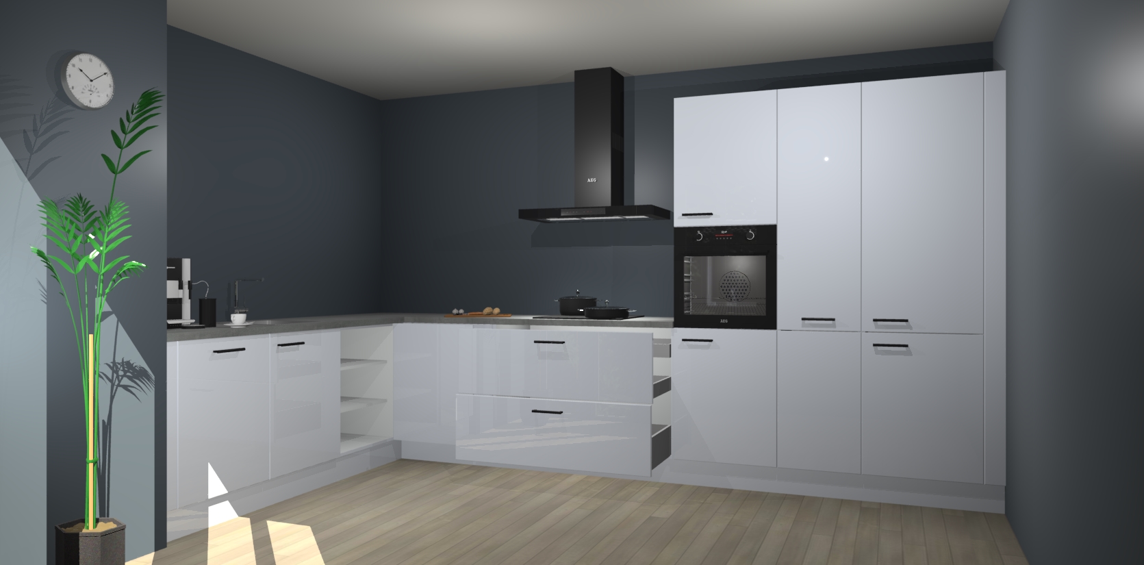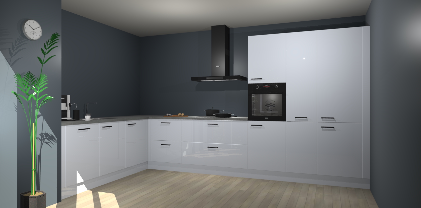 Welkom bij de sneeuwwitte hoogglans keuken Nuuk. Deze prachtige keuken zal de komende jaren het middelpunt van de belangstelling in uw huis zijn. Uitgerust met vijf inbouwapparaten komt u nooit kookgereedschap tekort.