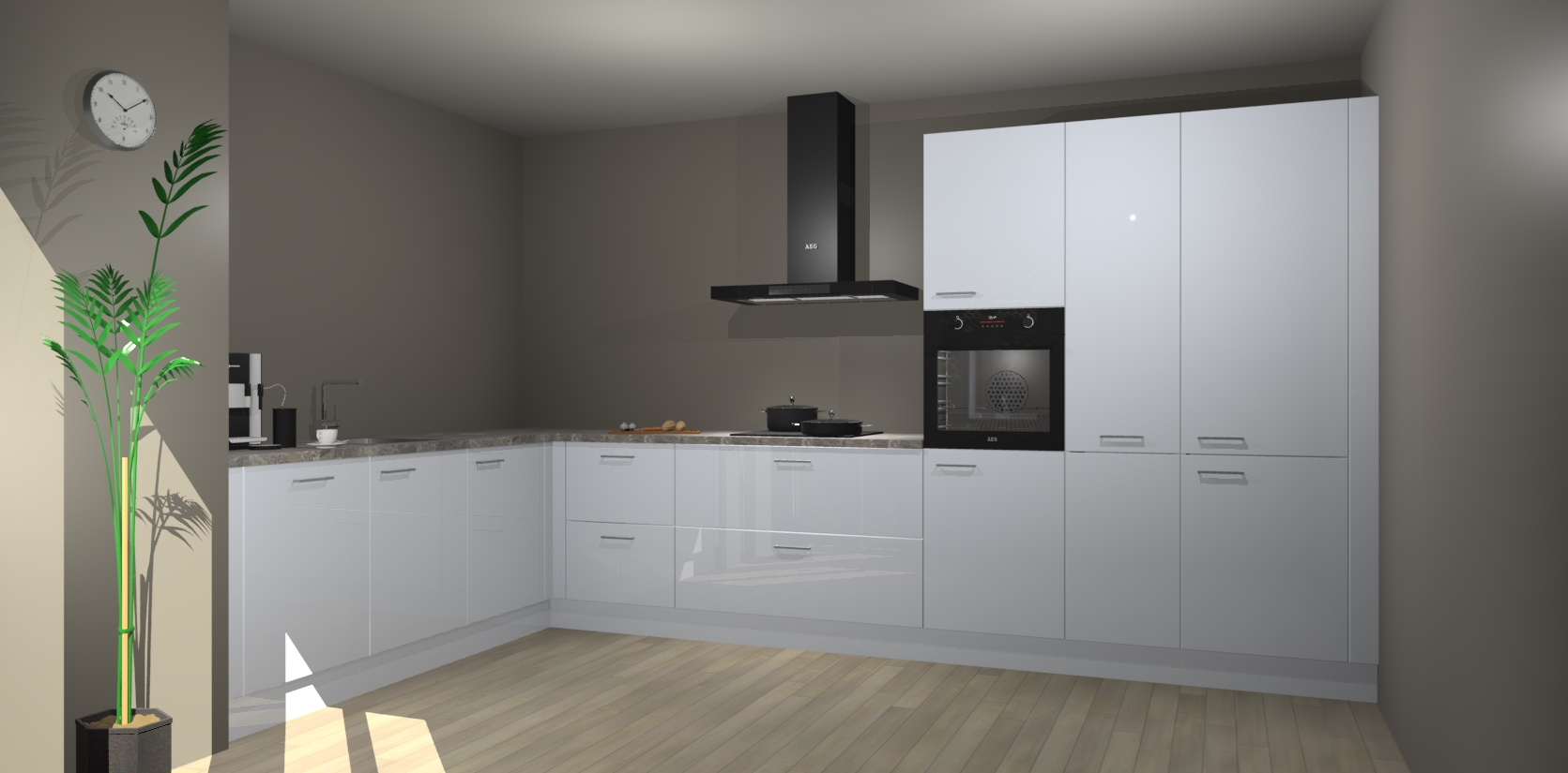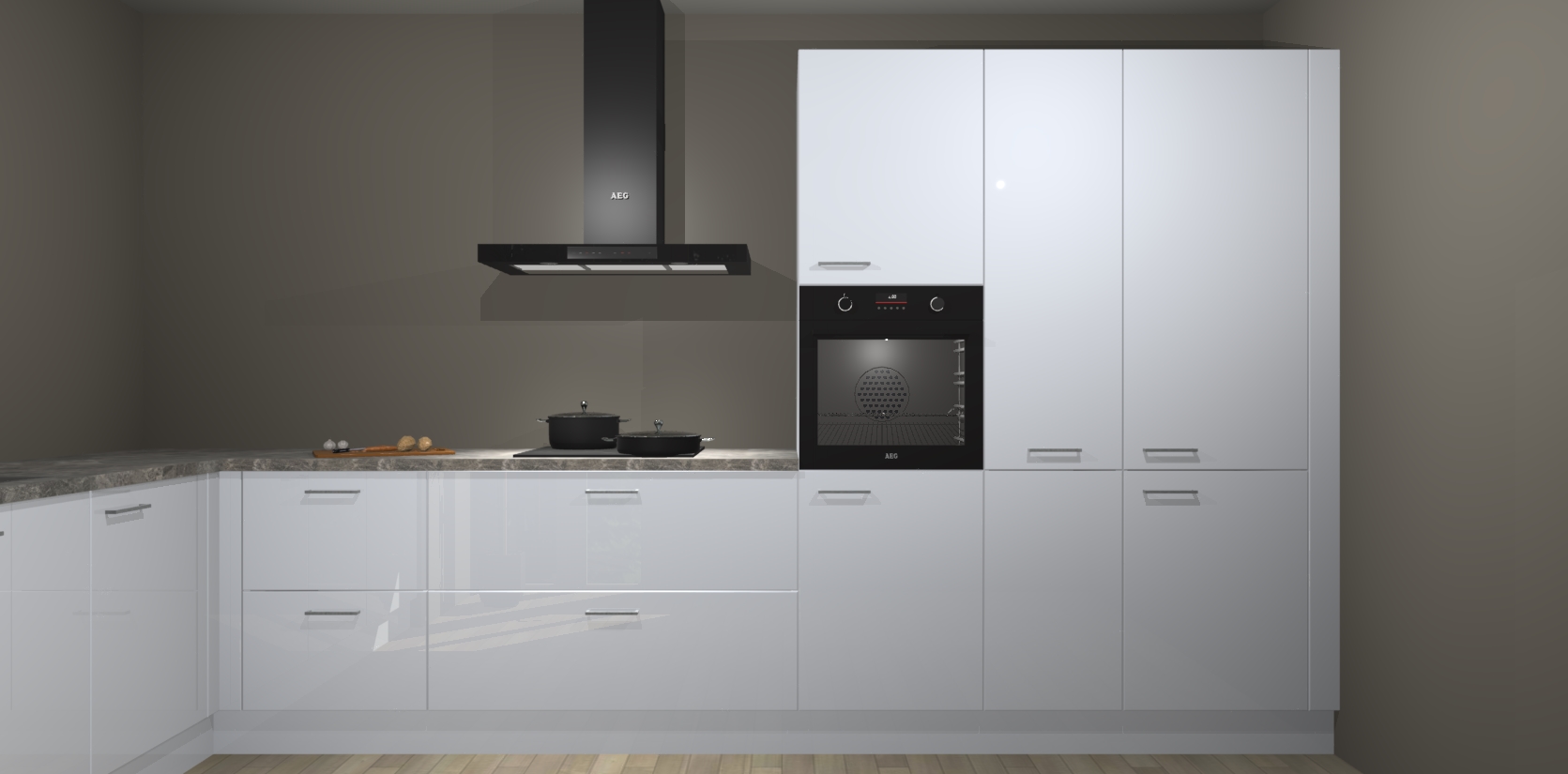 Welkom bij de sneeuwwitte hoogglans keuken Nuuk. Deze prachtige keuken zal de komende jaren het middelpunt van de belangstelling in uw huis zijn. Uitgerust met vijf inbouwapparaten komt u nooit kookgereedschap tekort.