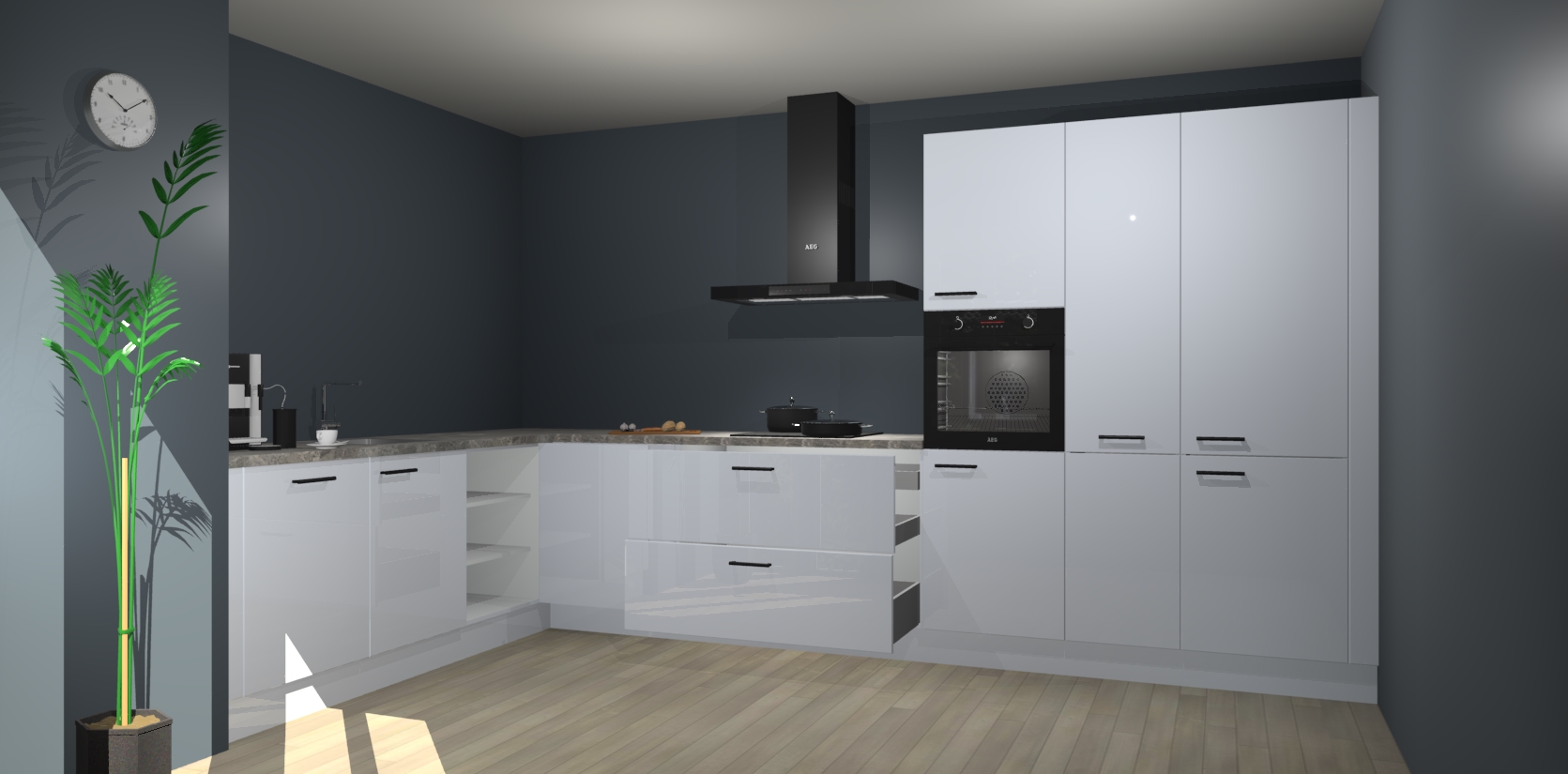 Welkom bij de sneeuwwitte hoogglans keuken Nuuk. Deze prachtige keuken zal de komende jaren het middelpunt van de belangstelling in uw huis zijn. Uitgerust met vijf inbouwapparaten komt u nooit kookgereedschap tekort.