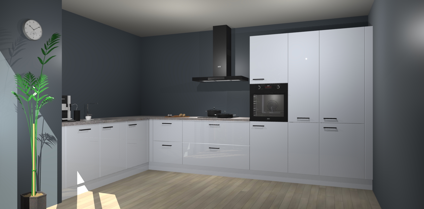 Welkom bij de sneeuwwitte hoogglans keuken Nuuk. Deze prachtige keuken zal de komende jaren het middelpunt van de belangstelling in uw huis zijn. Uitgerust met vijf inbouwapparaten komt u nooit kookgereedschap tekort.