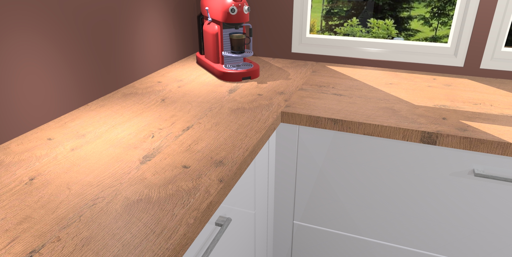 - Bij een hoekwerkblad zijn de hoeken in gevreesd en op maat gemaakt