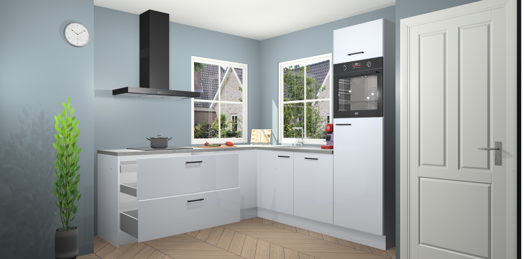 De Sneeuwwitte hoogglans keuken Pai bevat vijf essentiële inbouwapparaten - een oven, inductiekookplaat, afzuigkap, vaatwasser en koelkast - zodat u er na levering meteen in kunt. Voor de slimme kopers die weten dat apparaten vaak het verschil kunnen maken tussen functioneel en luxueus, bieden we eenvoudige upgradeopties naar AEG, van oven naar combimagnetron na bestelling of naar een kookplaat met geïntrigeerde afzuiging. En met onze vaste lage prijs en snelle levering binnen zeven weken vanaf de orderbevestiging hoeft u zich geen zorgen te maken over verborgen kosten of lange levertijden die uw droomkeuken kunnen vertragen.