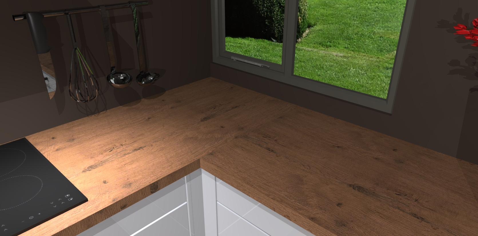 - Bij een hoekwerkblad zijn de hoeken in gevreesd en op maat gemaakt