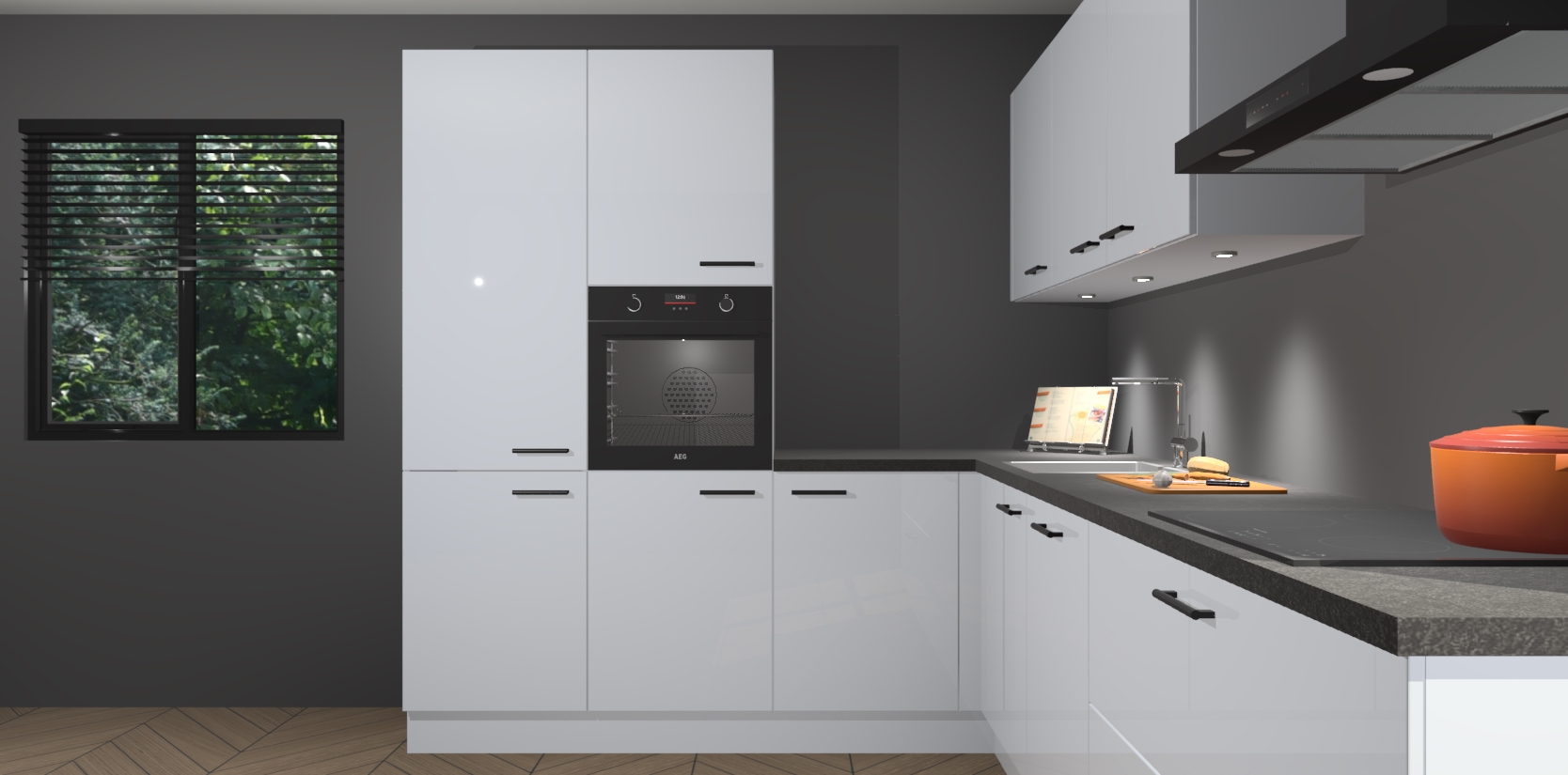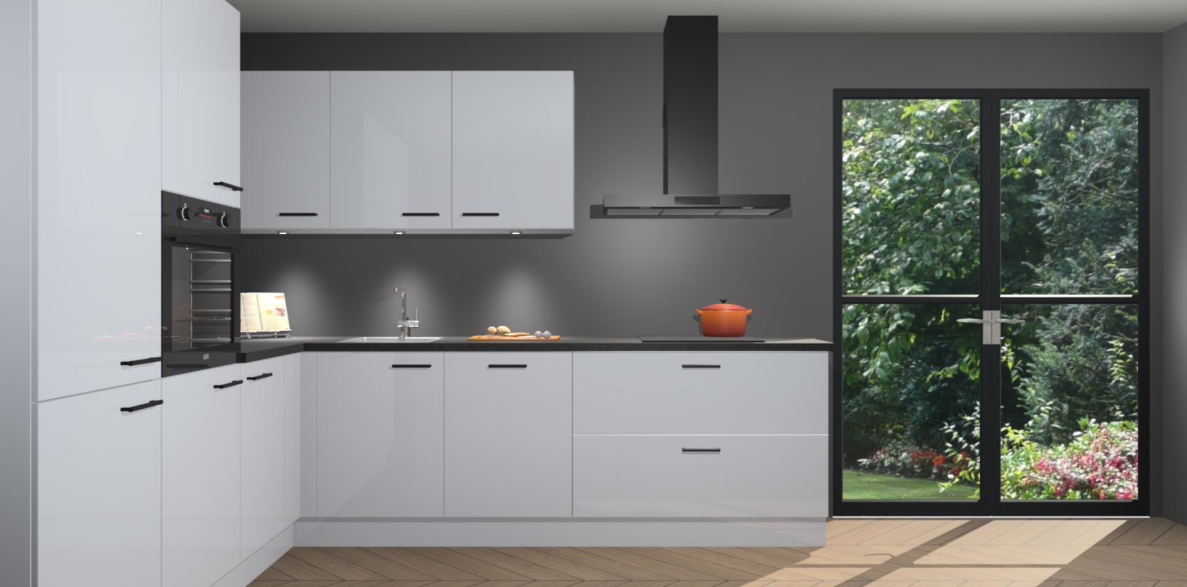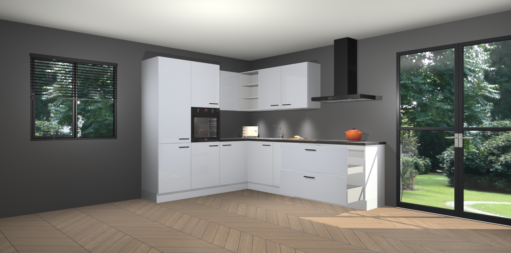 Maak kennis met de sneeuwwitte hoogglans keuken Parla - de perfecte aanvulling voor uw moderne keuken! Ervaar tijdloos design, elegantie en een chique uitstraling met onze zwarte handgrepen, soft-close deuren en veel opbergruimte. Dit alles wordt aangeboden tegen een vaste lage prijs voor ongeëvenaarde Duitse keukenkwaliteit!