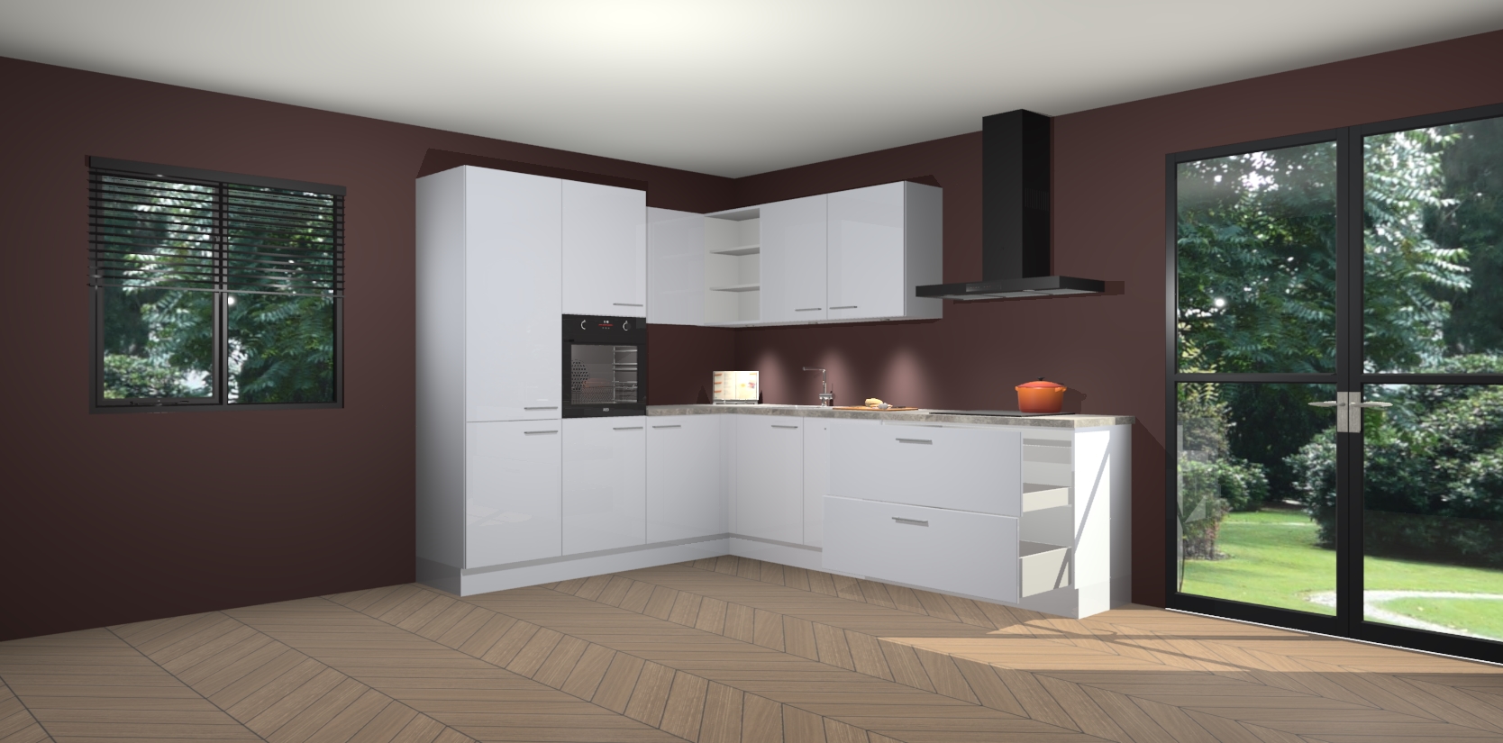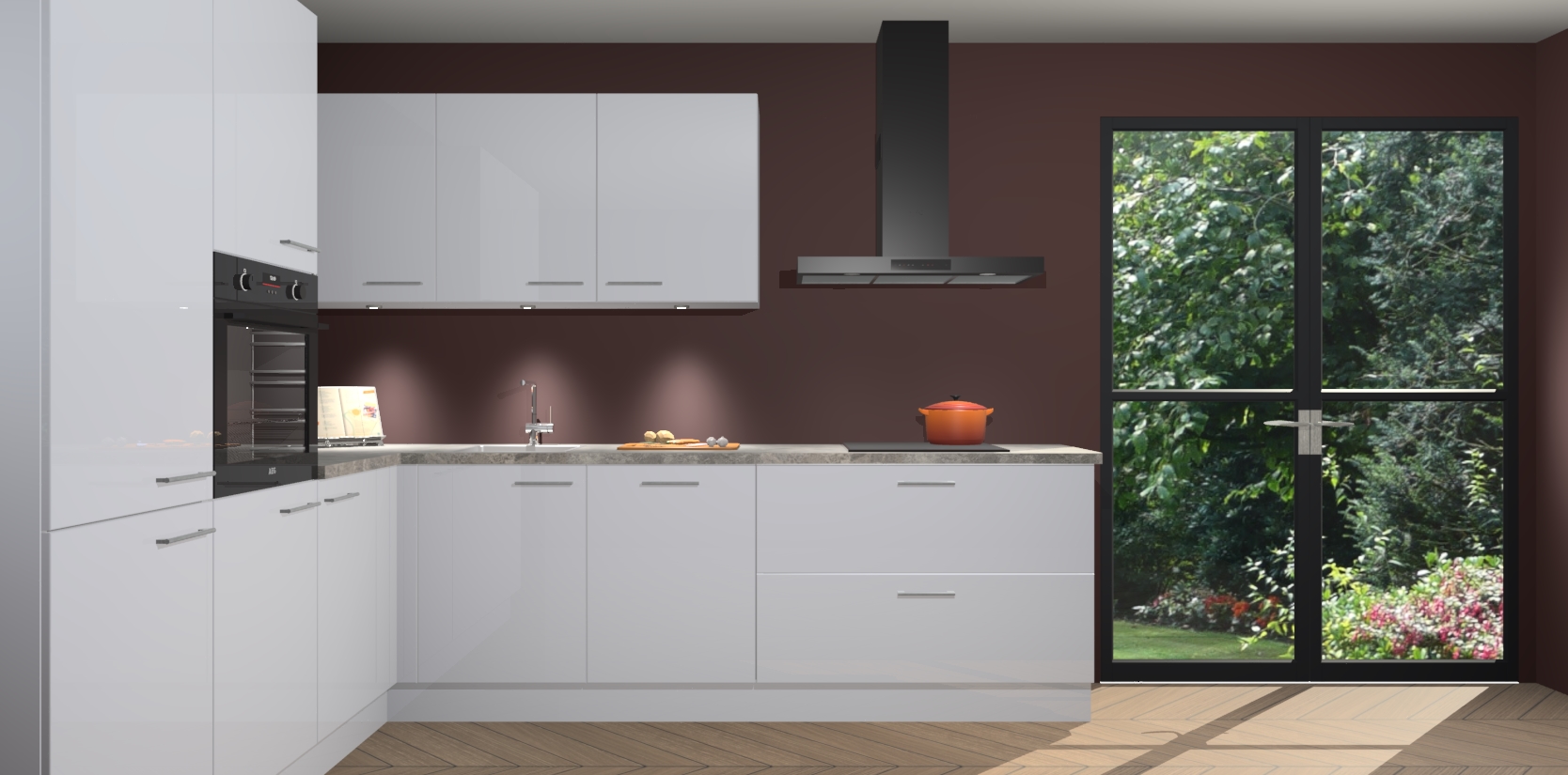 Maak kennis met de sneeuwwitte hoogglans keuken Parla - de perfecte aanvulling voor uw moderne keuken! Ervaar tijdloos design, elegantie en een chique uitstraling met onze zwarte handgrepen, soft-close deuren en veel opbergruimte. Dit alles wordt aangeboden tegen een vaste lage prijs voor ongeëvenaarde Duitse keukenkwaliteit!