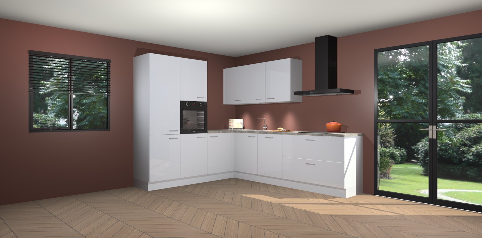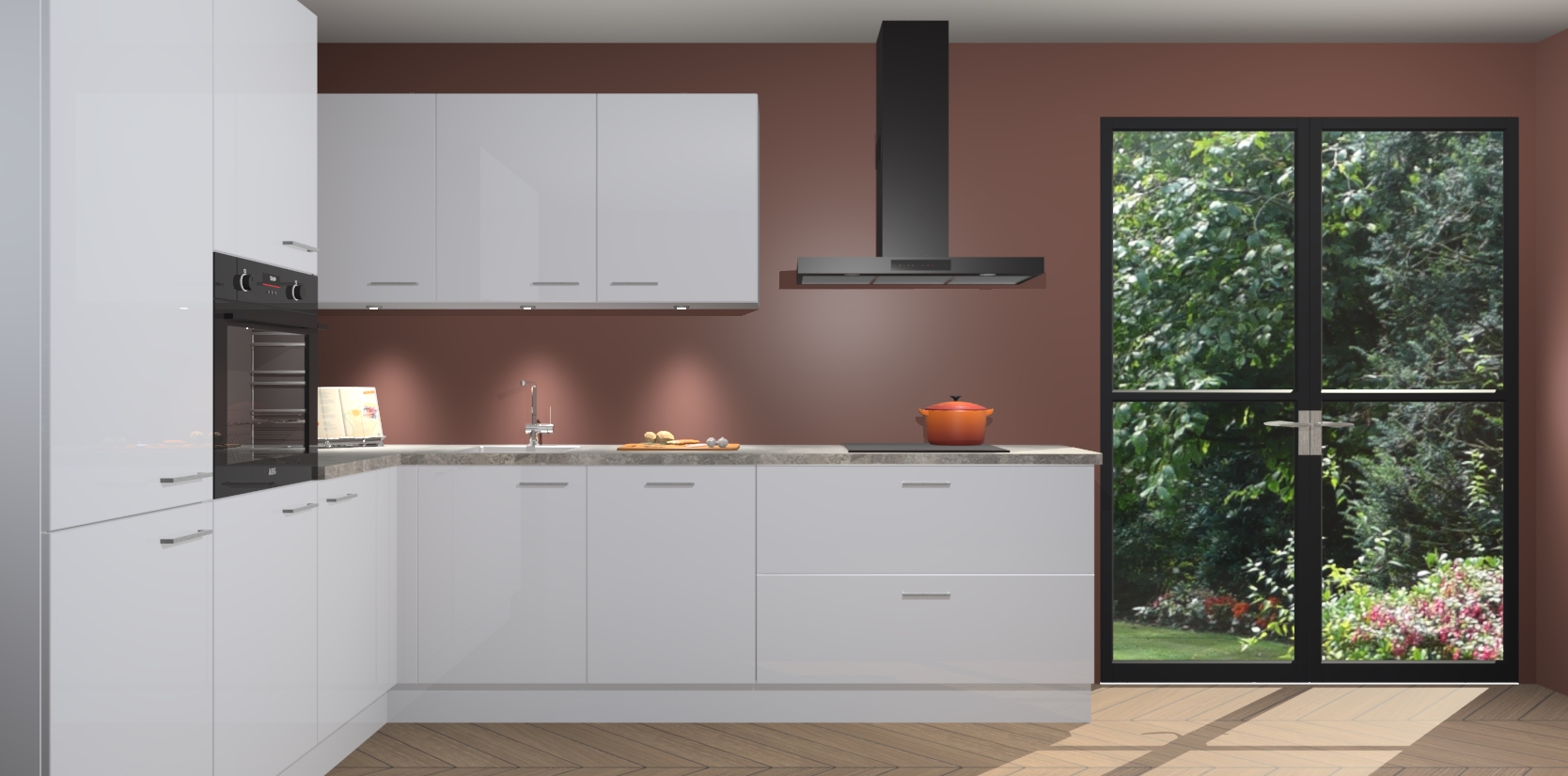Maak kennis met de sneeuwwitte hoogglans keuken Parla - de perfecte aanvulling voor uw moderne keuken! Ervaar tijdloos design, elegantie en een chique uitstraling met onze zwarte handgrepen, soft-close deuren en veel opbergruimte. Dit alles wordt aangeboden tegen een vaste lage prijs voor ongeëvenaarde Duitse keukenkwaliteit!