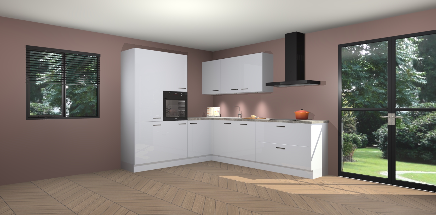 Maak kennis met de sneeuwwitte hoogglans keuken Parla - de perfecte aanvulling voor uw moderne keuken! Ervaar tijdloos design, elegantie en een chique uitstraling met onze zwarte handgrepen, soft-close deuren en veel opbergruimte. Dit alles wordt aangeboden tegen een vaste lage prijs voor ongeëvenaarde Duitse keukenkwaliteit!