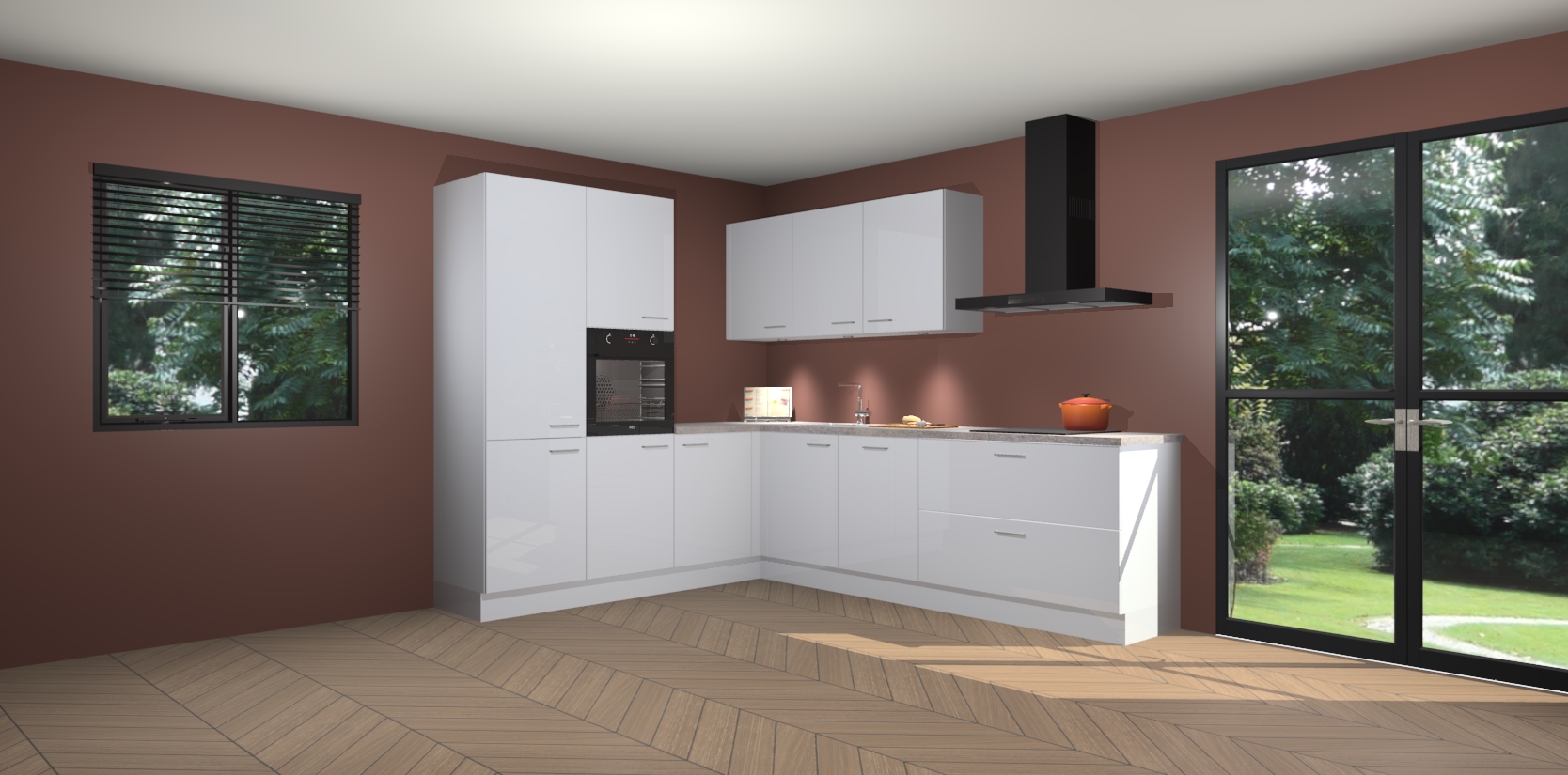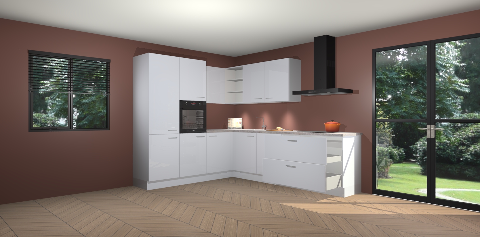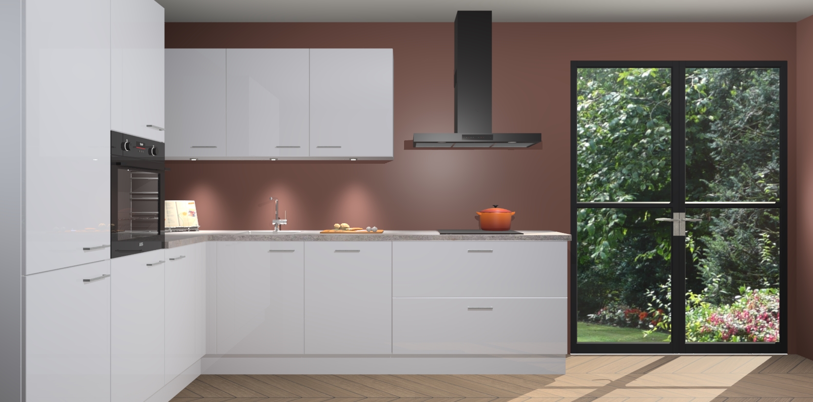 Maak kennis met de sneeuwwitte hoogglans keuken Parla - de perfecte aanvulling voor uw moderne keuken! Ervaar tijdloos design, elegantie en een chique uitstraling met onze zwarte handgrepen, soft-close deuren en veel opbergruimte. Dit alles wordt aangeboden tegen een vaste lage prijs voor ongeëvenaarde Duitse keukenkwaliteit!