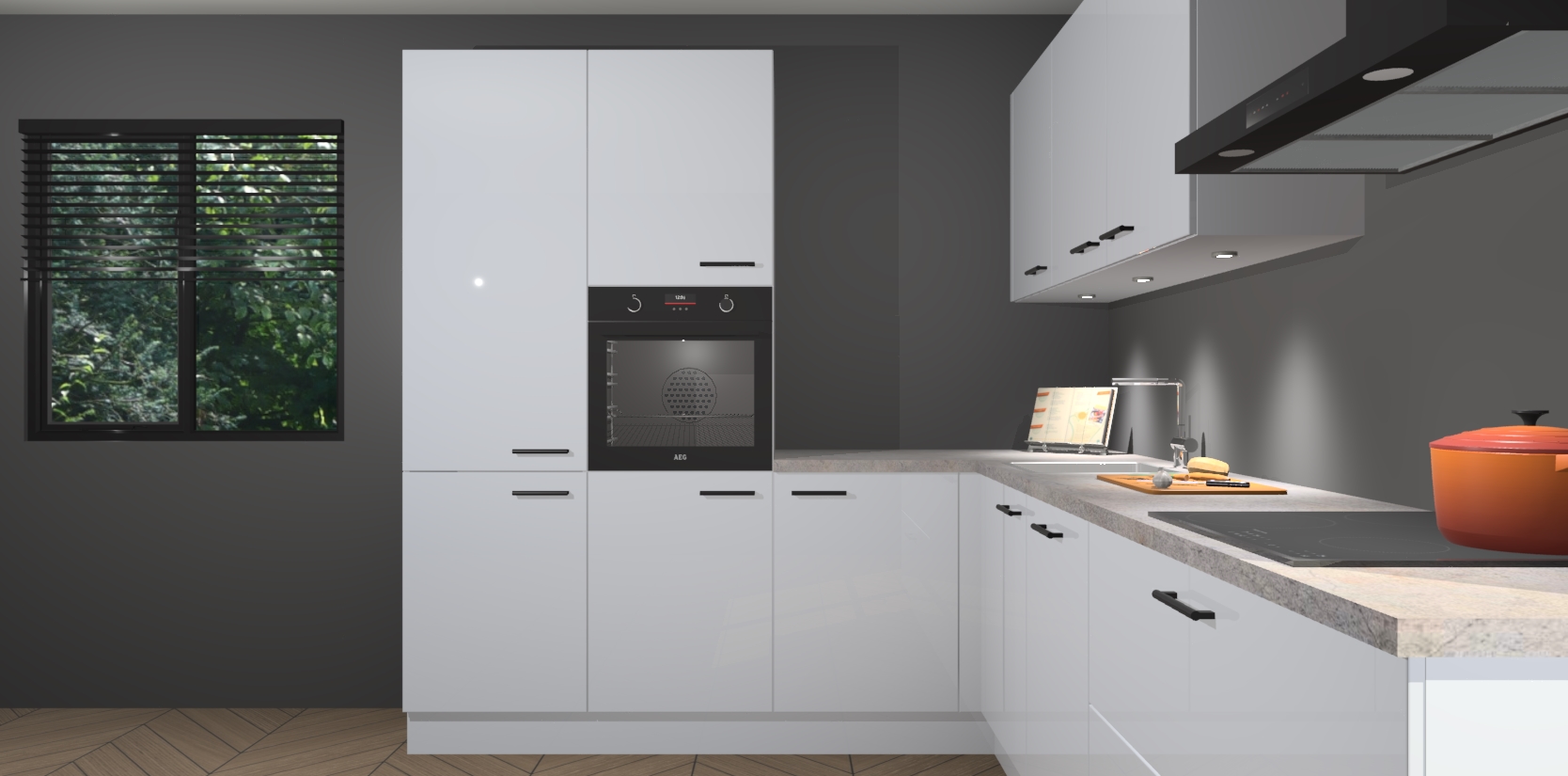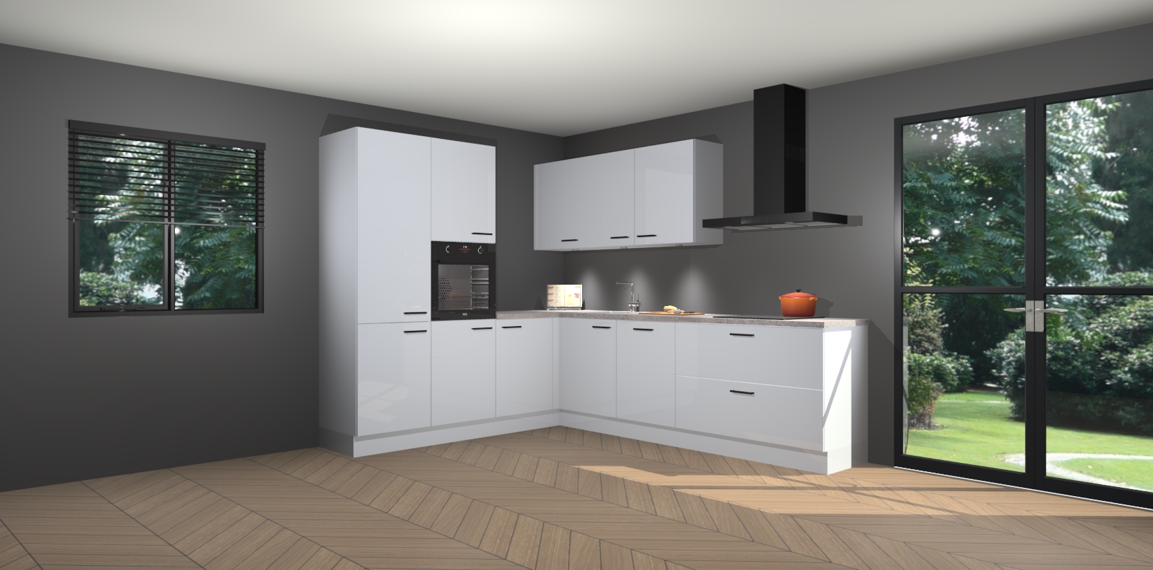 Maak kennis met de sneeuwwitte hoogglans keuken Parla - de perfecte aanvulling voor uw moderne keuken! Ervaar tijdloos design, elegantie en een chique uitstraling met onze zwarte handgrepen, soft-close deuren en veel opbergruimte. Dit alles wordt aangeboden tegen een vaste lage prijs voor ongeëvenaarde Duitse keukenkwaliteit!