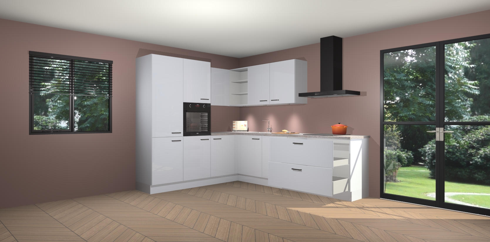 Maak kennis met de sneeuwwitte hoogglans keuken Parla - de perfecte aanvulling voor uw moderne keuken! Ervaar tijdloos design, elegantie en een chique uitstraling met onze zwarte handgrepen, soft-close deuren en veel opbergruimte. Dit alles wordt aangeboden tegen een vaste lage prijs voor ongeëvenaarde Duitse keukenkwaliteit!