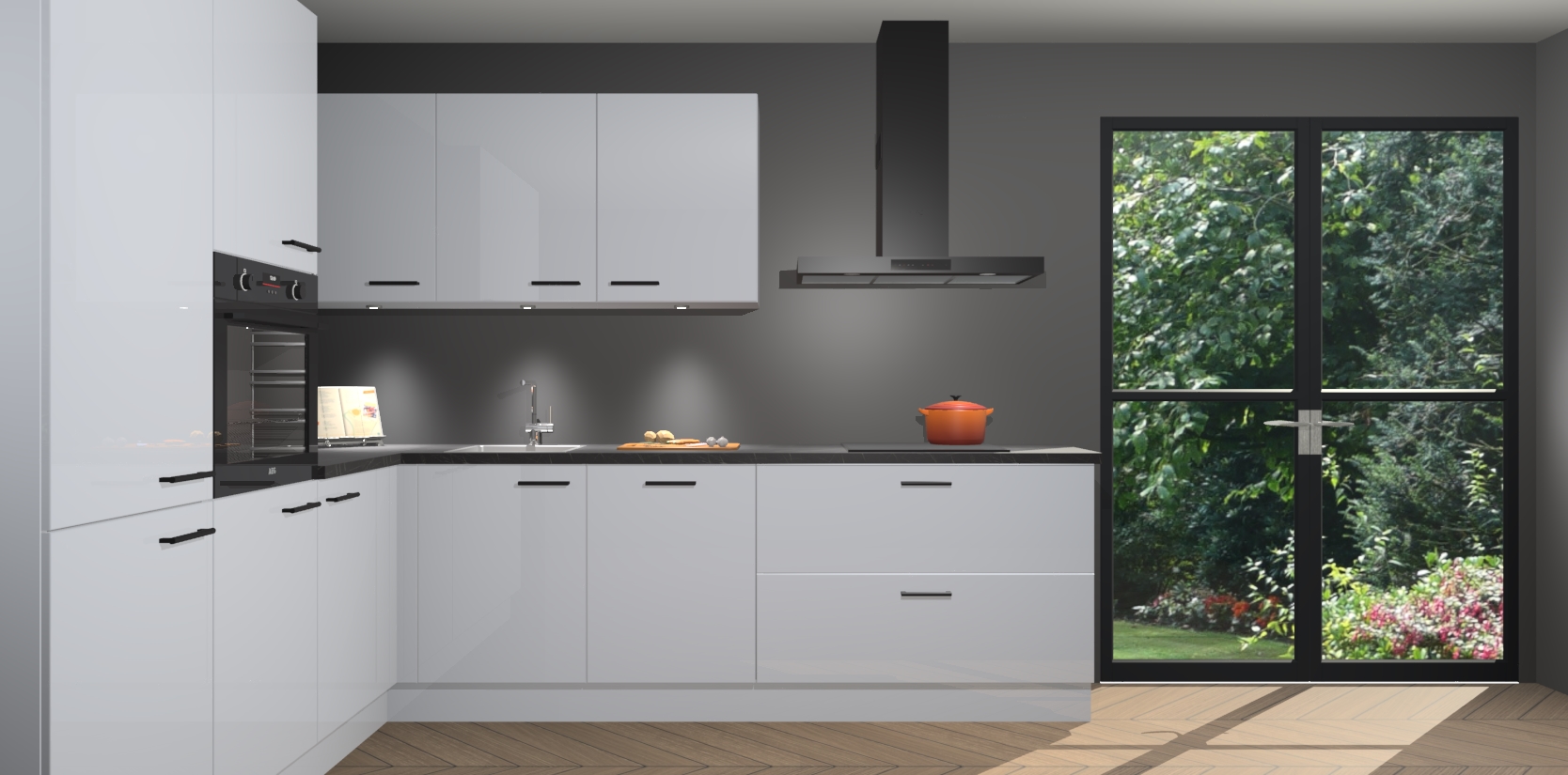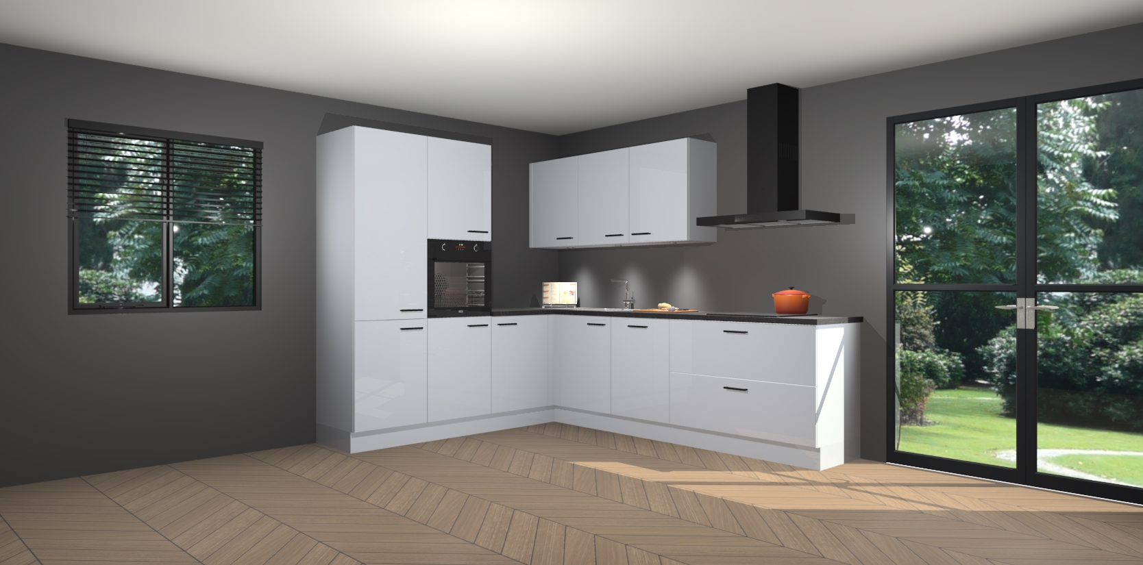 Maak kennis met de sneeuwwitte hoogglans keuken Parla - de perfecte aanvulling voor uw moderne keuken! Ervaar tijdloos design, elegantie en een chique uitstraling met onze zwarte handgrepen, soft-close deuren en veel opbergruimte. Dit alles wordt aangeboden tegen een vaste lage prijs voor ongeëvenaarde Duitse keukenkwaliteit!