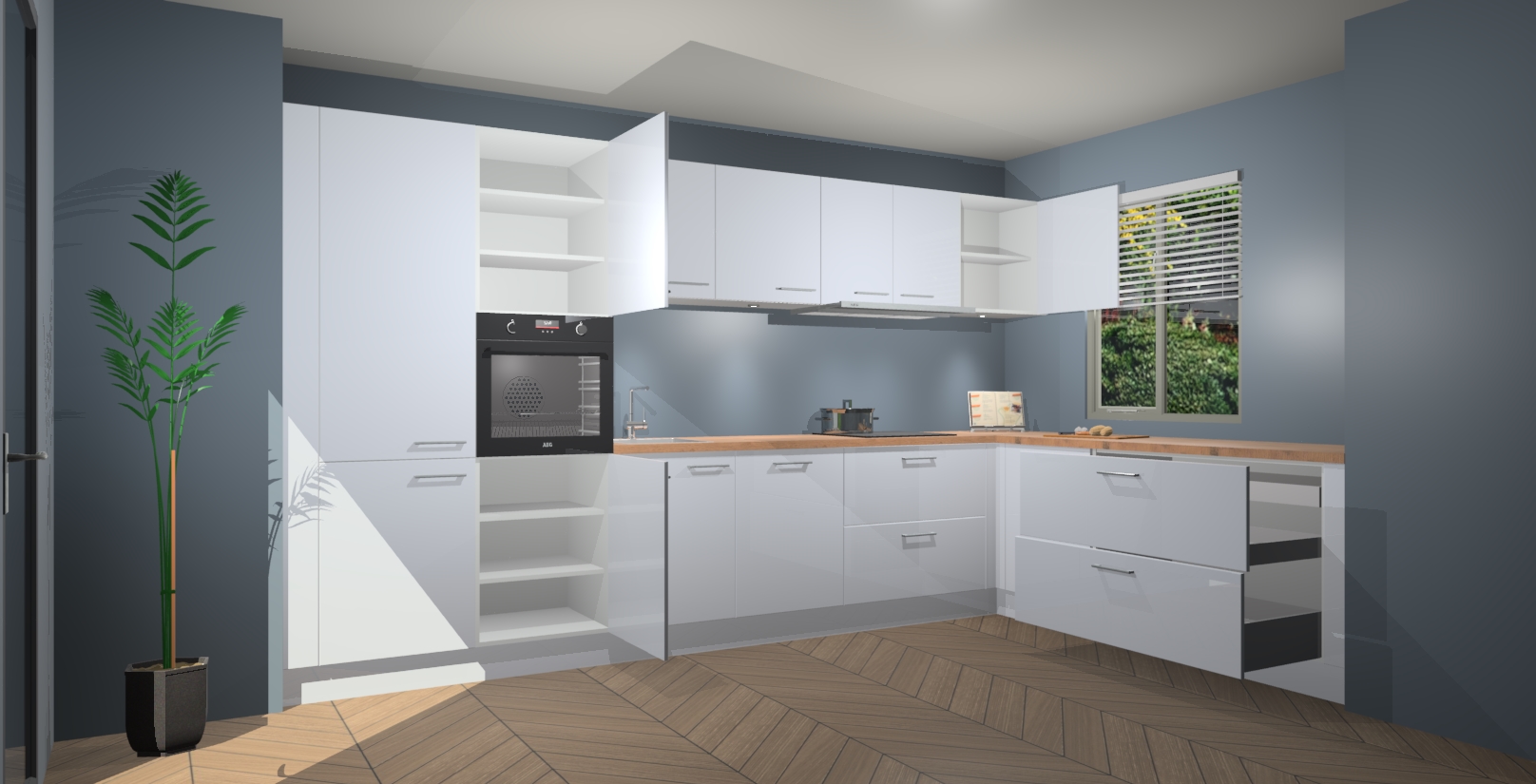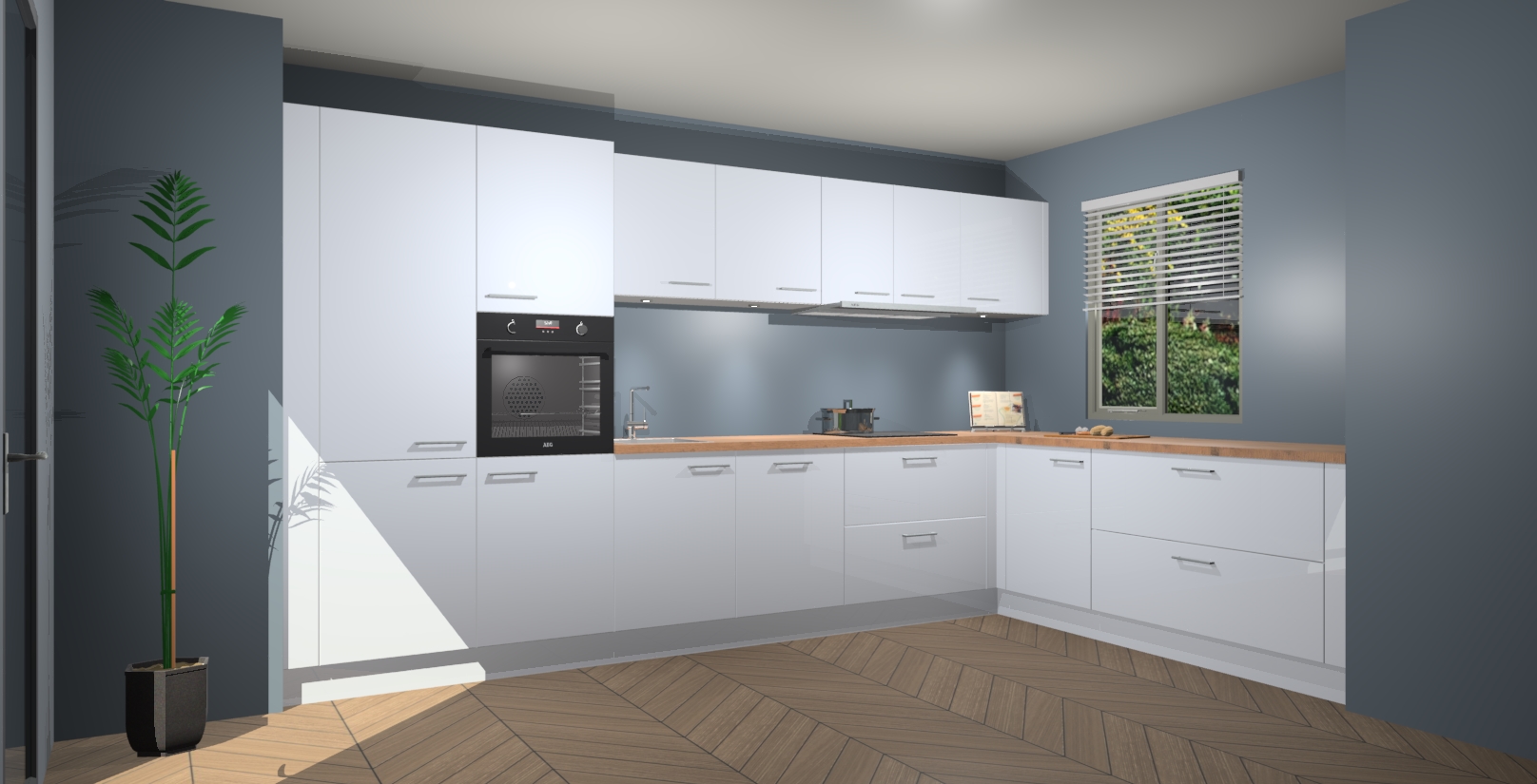 Verwelkom de natuurlijke warmte van de Sneeuwwitte Hoogglans keuken Petten in uw huis. Deze prachtige hoekkeuken met zijn moderne design en warme houten look geeft u meer dan genoeg opbergruimte om uw comfortabel te voelen in uw keuken. Geniet van soft-close deuren die al uw gasten het gevoel zullen geven dat ze zich in een luxueuze ruimte bevinden.
