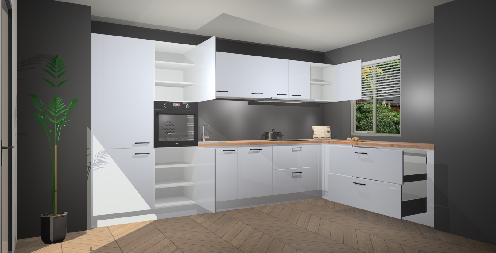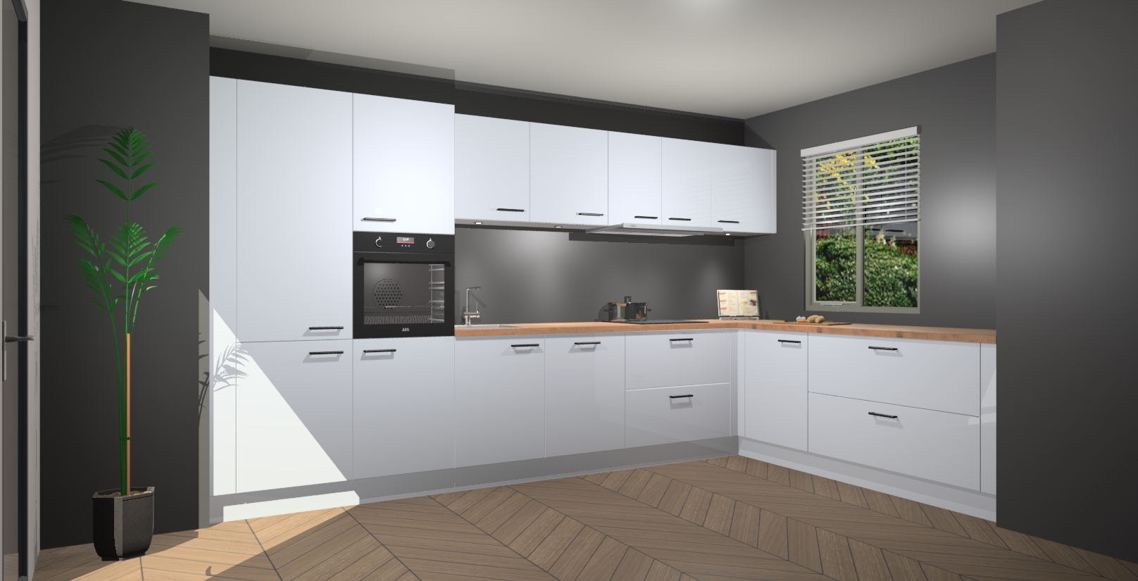 Verwelkom de natuurlijke warmte van de Sneeuwwitte Hoogglans keuken Petten in uw huis. Deze prachtige hoekkeuken met zijn moderne design en warme houten look geeft u meer dan genoeg opbergruimte om uw comfortabel te voelen in uw keuken. Geniet van soft-close deuren die al uw gasten het gevoel zullen geven dat ze zich in een luxueuze ruimte bevinden.