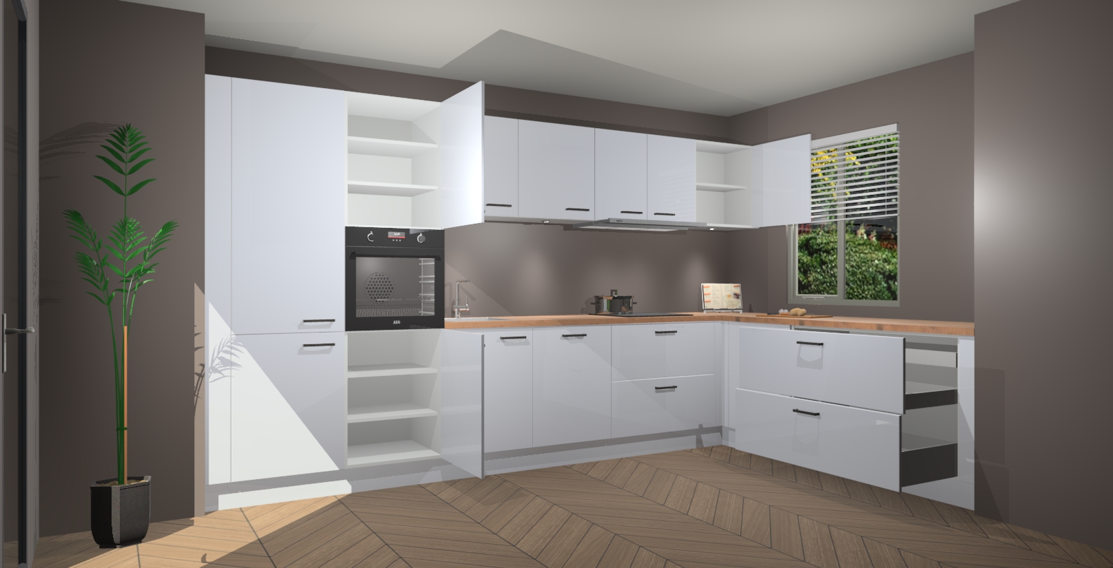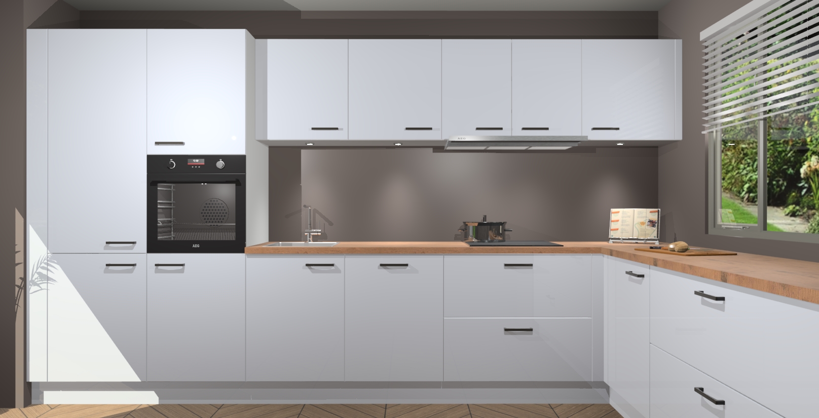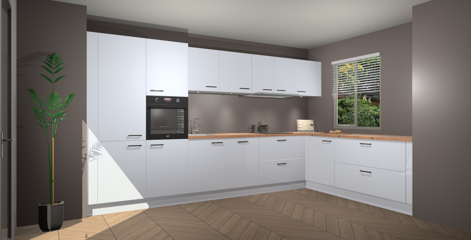Verwelkom de natuurlijke warmte van de Sneeuwwitte Hoogglans keuken Petten in uw huis. Deze prachtige hoekkeuken met zijn moderne design en warme houten look geeft u meer dan genoeg opbergruimte om uw comfortabel te voelen in uw keuken. Geniet van soft-close deuren die al uw gasten het gevoel zullen geven dat ze zich in een luxueuze ruimte bevinden.
