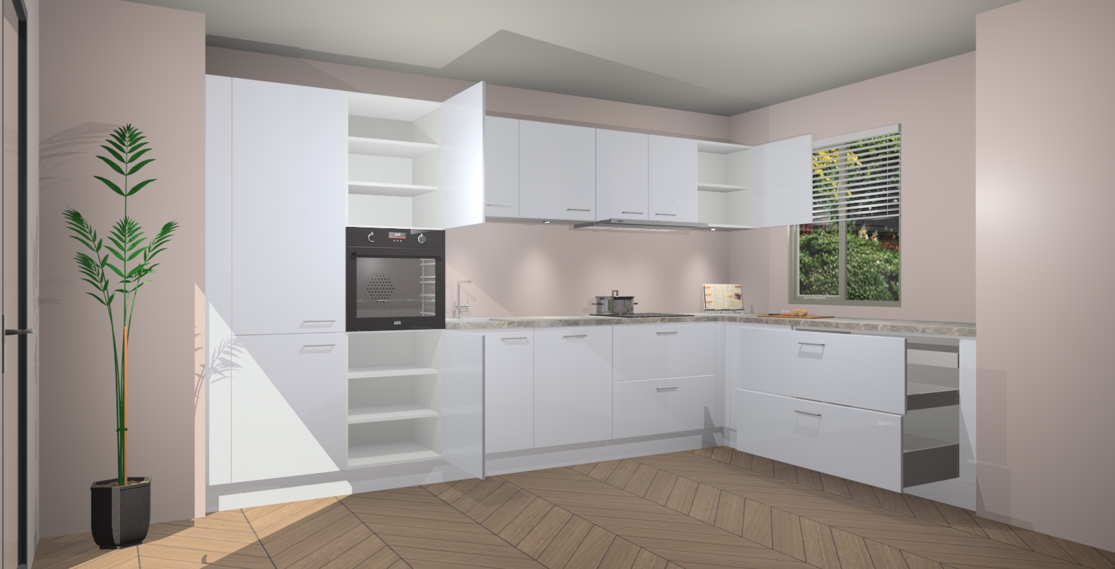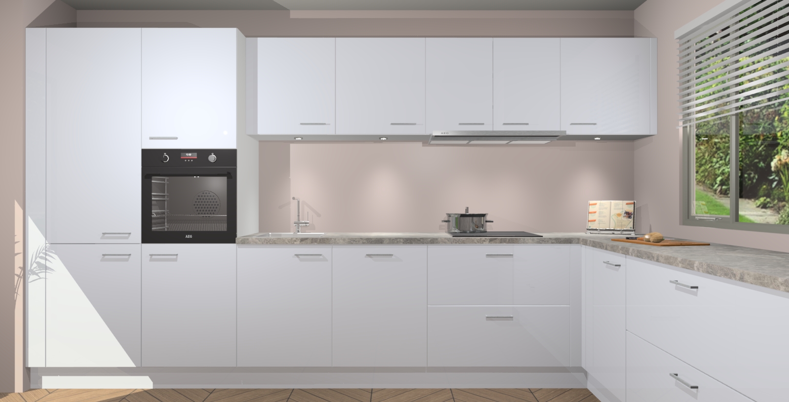 Verwelkom de natuurlijke warmte van de Sneeuwwitte Hoogglans keuken Petten in uw huis. Deze prachtige hoekkeuken met zijn moderne design en warme houten look geeft u meer dan genoeg opbergruimte om uw comfortabel te voelen in uw keuken. Geniet van soft-close deuren die al uw gasten het gevoel zullen geven dat ze zich in een luxueuze ruimte bevinden.