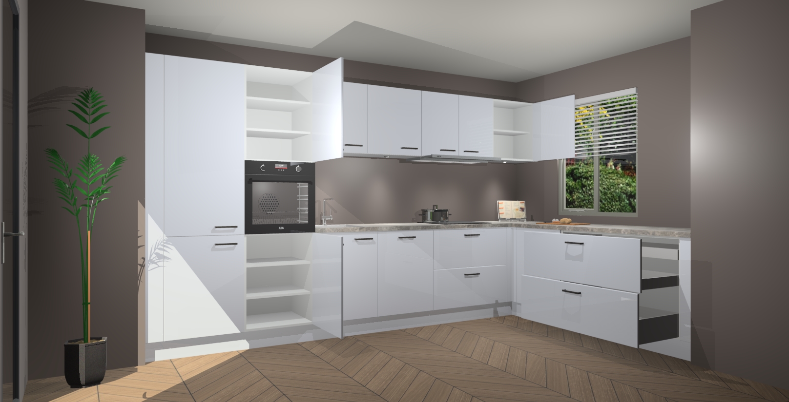Verwelkom de natuurlijke warmte van de Sneeuwwitte Hoogglans keuken Petten in uw huis. Deze prachtige hoekkeuken met zijn moderne design en warme houten look geeft u meer dan genoeg opbergruimte om uw comfortabel te voelen in uw keuken. Geniet van soft-close deuren die al uw gasten het gevoel zullen geven dat ze zich in een luxueuze ruimte bevinden.
