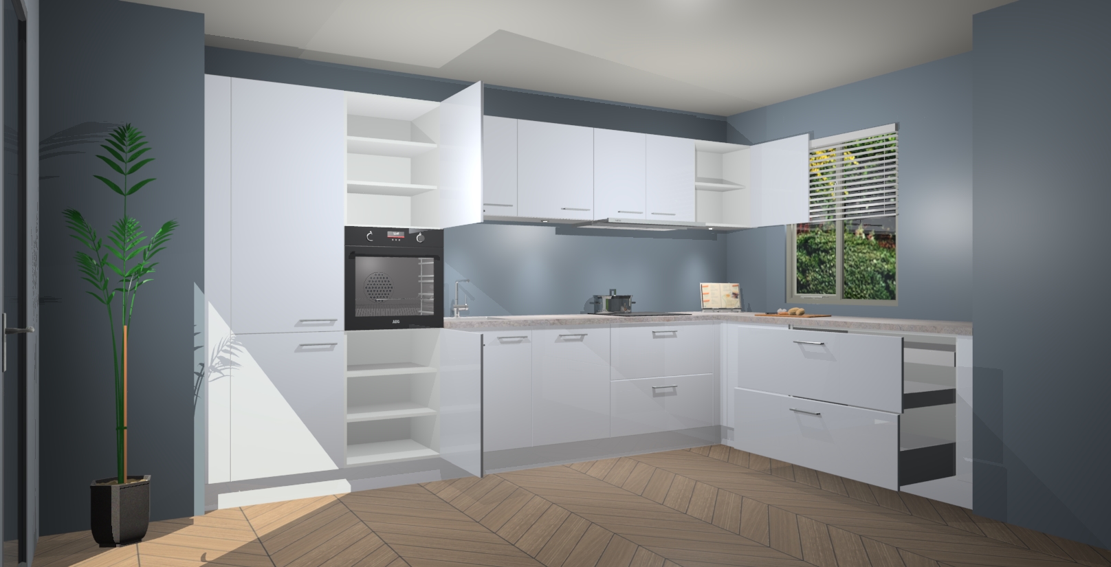 Inclusief plinten, stelpoten en werkblad