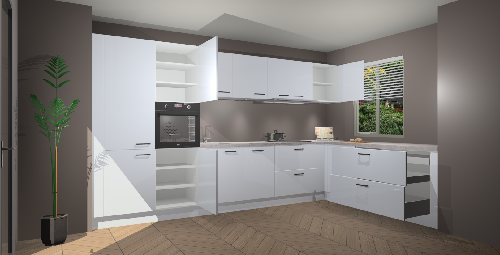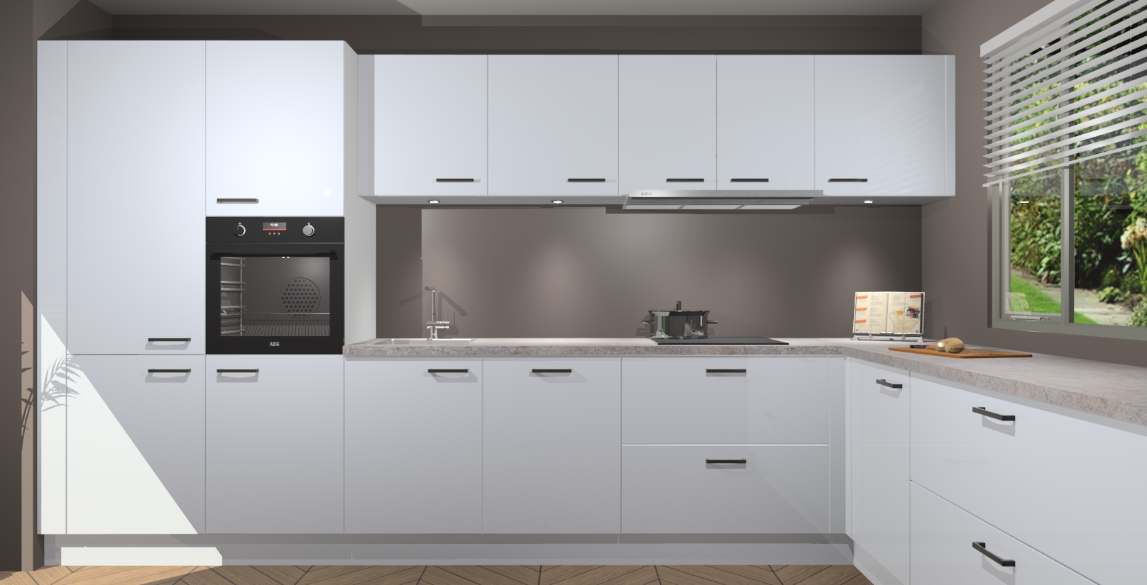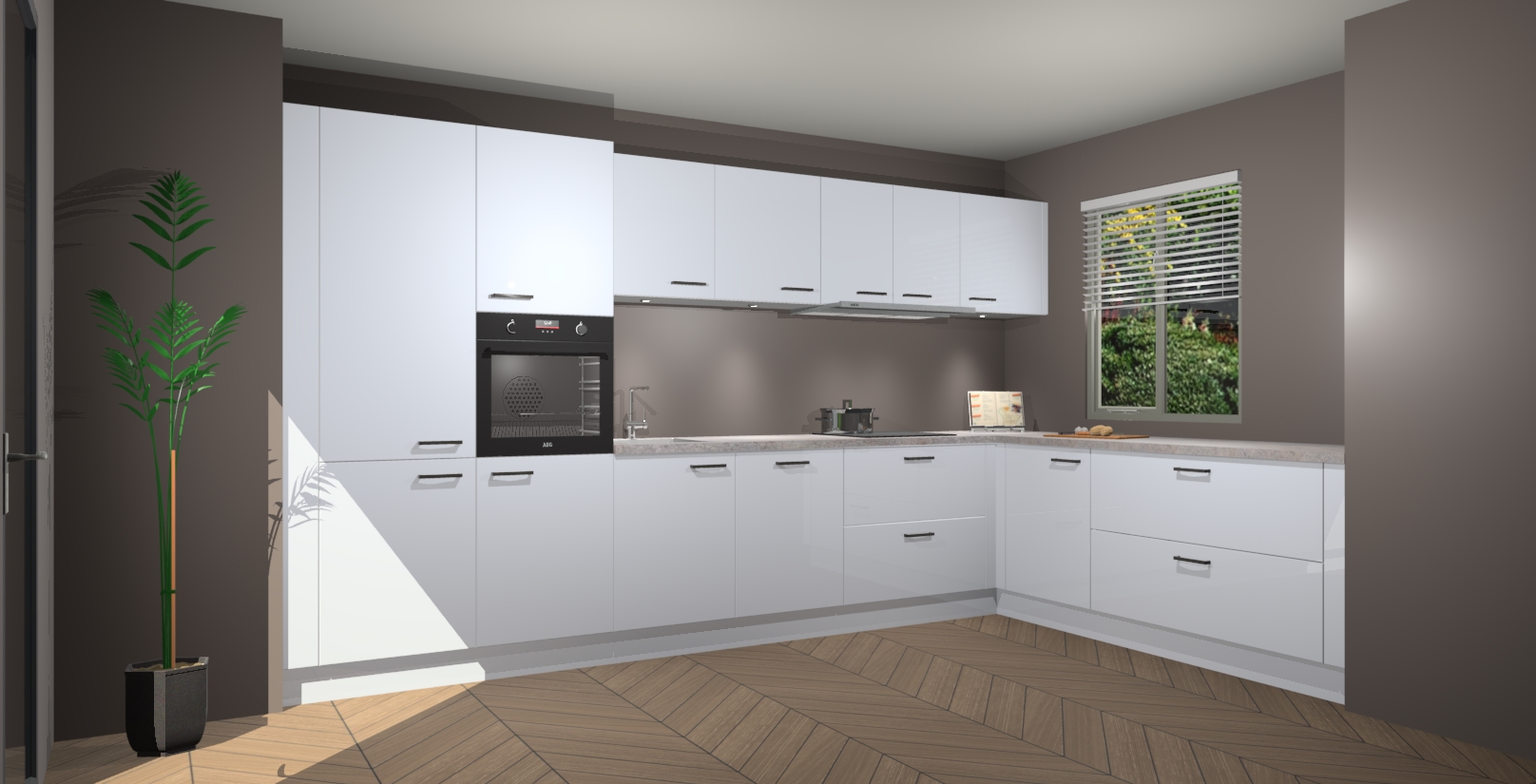 Verwelkom de natuurlijke warmte van de Sneeuwwitte Hoogglans keuken Petten in uw huis. Deze prachtige hoekkeuken met zijn moderne design en warme houten look geeft u meer dan genoeg opbergruimte om uw comfortabel te voelen in uw keuken. Geniet van soft-close deuren die al uw gasten het gevoel zullen geven dat ze zich in een luxueuze ruimte bevinden.
