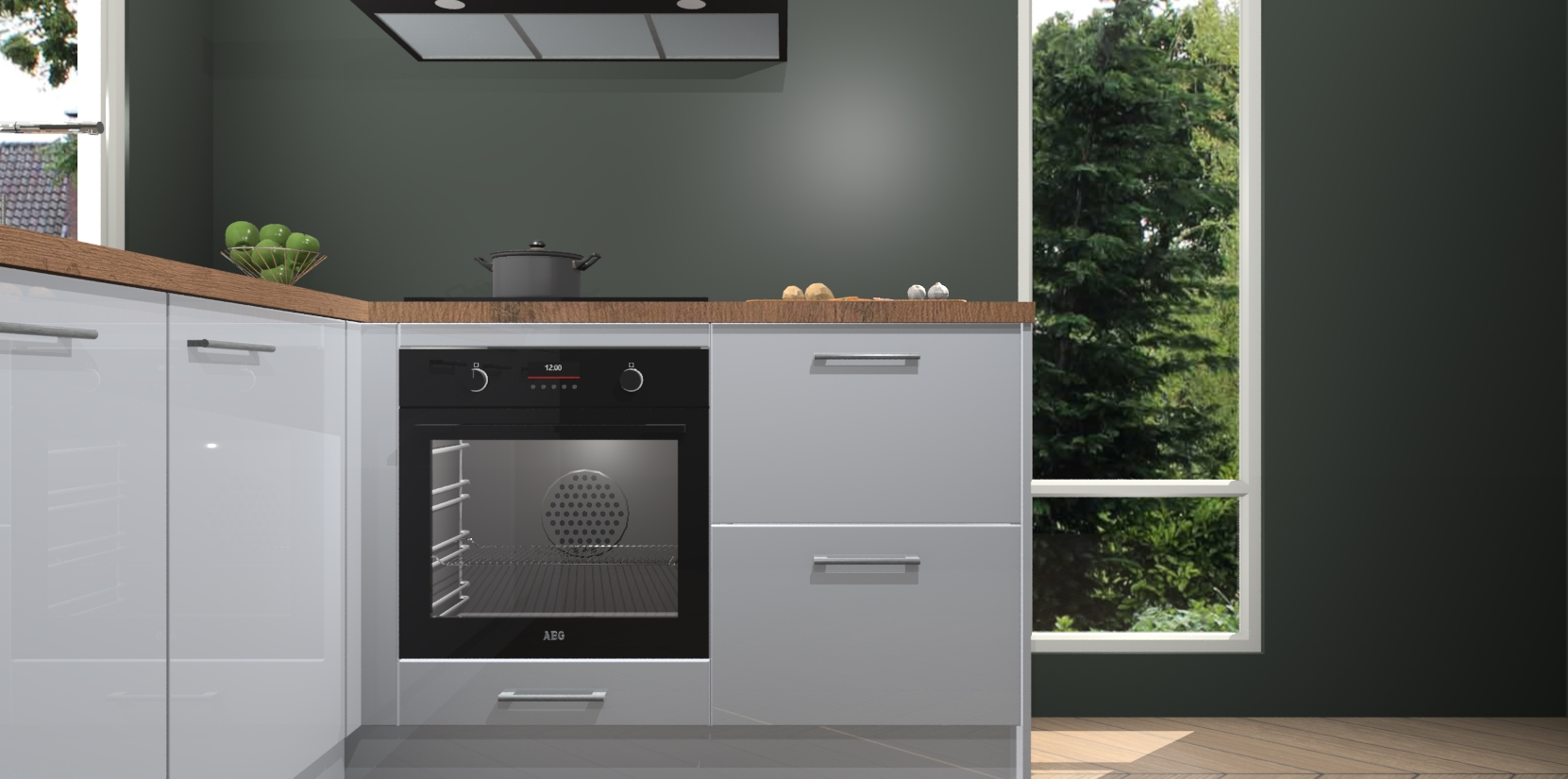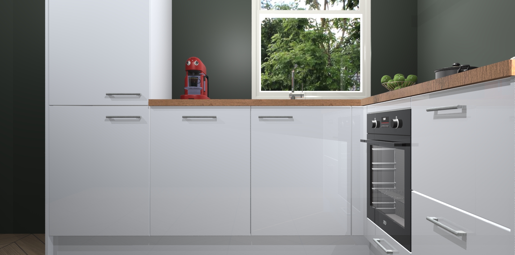 De Sneeuwwitte hoogglans keuken Phuket heeft alles wat u maar kunt wensen. Niet alleen zijn er softclose deuren, maar ook 5 ingebouwde apparaten: een oven, inductiekookplaat, afzuigkap, vaatwasser en koelkast - waarbij u later gemakkelijk naar het AEG merk, van inductiekookplaat naar kookplaat met geïntegreerde afzuiging of van oven naar combimagnetron kunt upgraden. Dat alles tegen een vast laag tarief! Bovendien geeft de Sneeuwwitte hoogglans keuken Phuket supersnelle levering van 7 weken. Echt iets voor u als u er niet op wilt wachten om het resultaat te zien in eigen keuken!