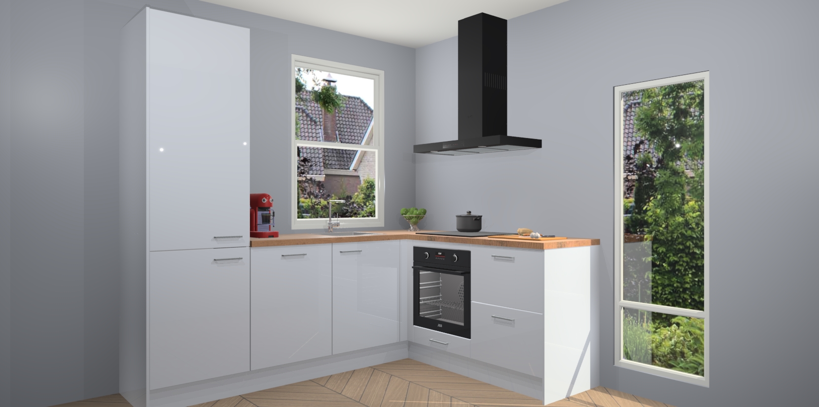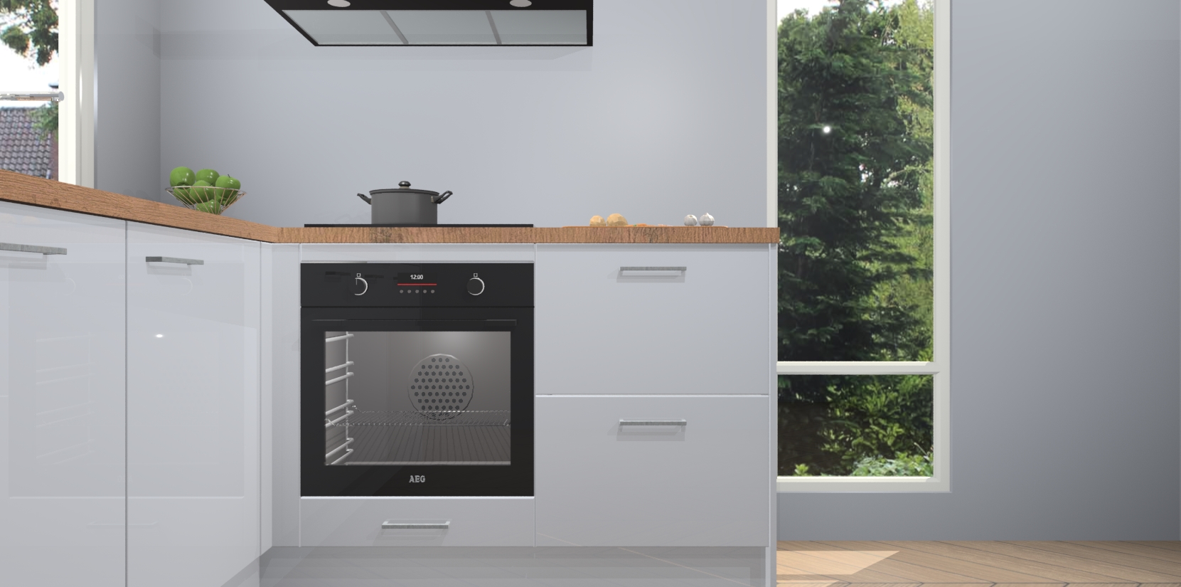 De Sneeuwwitte hoogglans keuken Phuket heeft alles wat u maar kunt wensen. Niet alleen zijn er softclose deuren, maar ook 5 ingebouwde apparaten: een oven, inductiekookplaat, afzuigkap, vaatwasser en koelkast - waarbij u later gemakkelijk naar het AEG merk, van inductiekookplaat naar kookplaat met geïntegreerde afzuiging of van oven naar combimagnetron kunt upgraden. Dat alles tegen een vast laag tarief! Bovendien geeft de Sneeuwwitte hoogglans keuken Phuket supersnelle levering van 7 weken. Echt iets voor u als u er niet op wilt wachten om het resultaat te zien in eigen keuken!