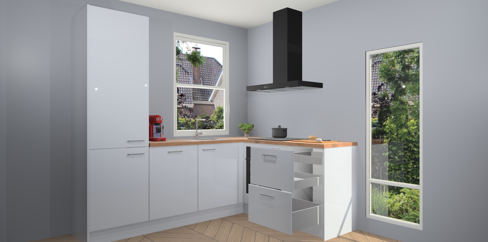 De prachtige Sneeuwwitte hoogglans keuken Phuket is de perfecte keuze als u op zoek bent naar een moderne hoekkeuken met alle luxe en comfort die u kunt verwachten! De uitstraling in het houtlook-design draagt bij aan de warme sfeer die u nu al voelt wanneer u er naar kijkt. Heeft u genoeg van ouderwetse keukens? Probeer dan direct deze moderne, mooie hoekkeukens en laat iedereen verbluft achter!