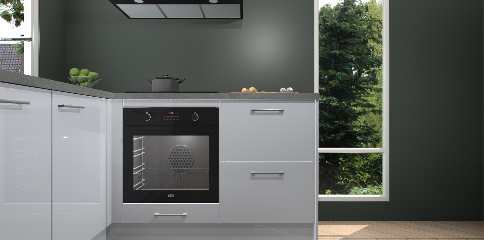 De Sneeuwwitte hoogglans keuken Phuket heeft alles wat u maar kunt wensen. Niet alleen zijn er softclose deuren, maar ook 5 ingebouwde apparaten: een oven, inductiekookplaat, afzuigkap, vaatwasser en koelkast - waarbij u later gemakkelijk naar het AEG merk, van inductiekookplaat naar kookplaat met geïntegreerde afzuiging of van oven naar combimagnetron kunt upgraden. Dat alles tegen een vast laag tarief! Bovendien geeft de Sneeuwwitte hoogglans keuken Phuket supersnelle levering van 7 weken. Echt iets voor u als u er niet op wilt wachten om het resultaat te zien in eigen keuken!