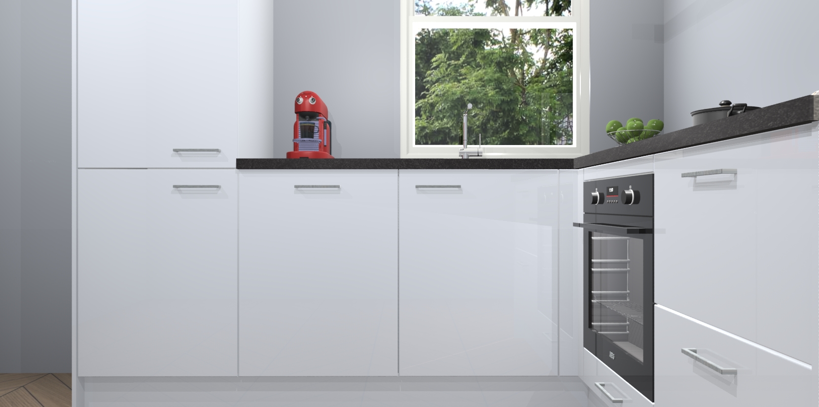 De Sneeuwwitte hoogglans keuken Phuket heeft alles wat u maar kunt wensen. Niet alleen zijn er softclose deuren, maar ook 5 ingebouwde apparaten: een oven, inductiekookplaat, afzuigkap, vaatwasser en koelkast - waarbij u later gemakkelijk naar het AEG merk, van inductiekookplaat naar kookplaat met geïntegreerde afzuiging of van oven naar combimagnetron kunt upgraden. Dat alles tegen een vast laag tarief! Bovendien geeft de Sneeuwwitte hoogglans keuken Phuket supersnelle levering van 7 weken. Echt iets voor u als u er niet op wilt wachten om het resultaat te zien in eigen keuken!