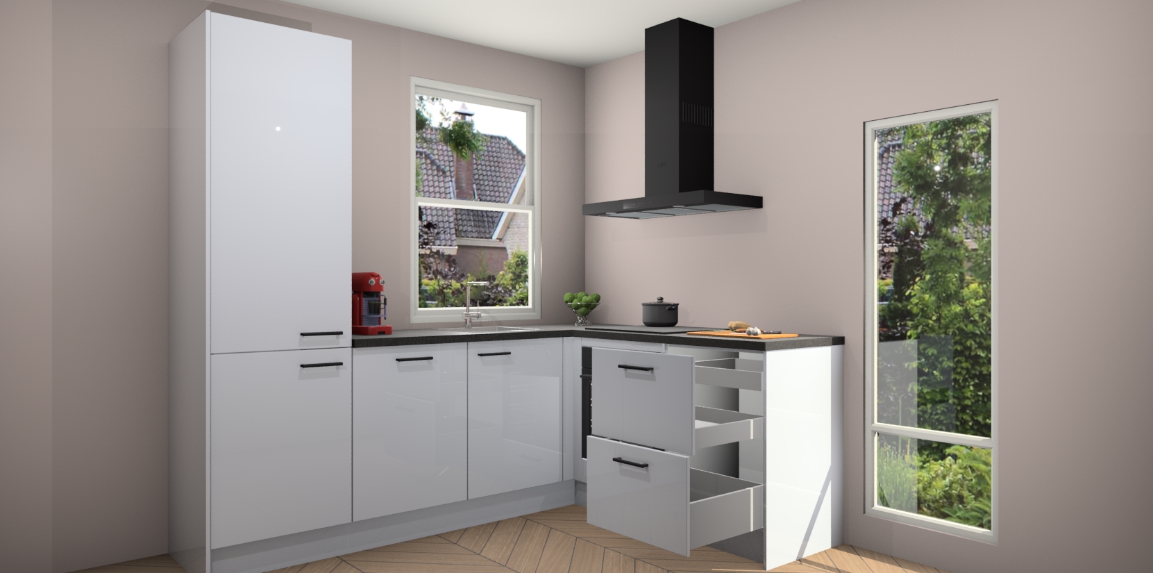 De prachtige Sneeuwwitte hoogglans keuken Phuket is de perfecte keuze als u op zoek bent naar een moderne hoekkeuken met alle luxe en comfort die u kunt verwachten! De uitstraling in het houtlook-design draagt bij aan de warme sfeer die u nu al voelt wanneer u er naar kijkt. Heeft u genoeg van ouderwetse keukens? Probeer dan direct deze moderne, mooie hoekkeukens en laat iedereen verbluft achter!