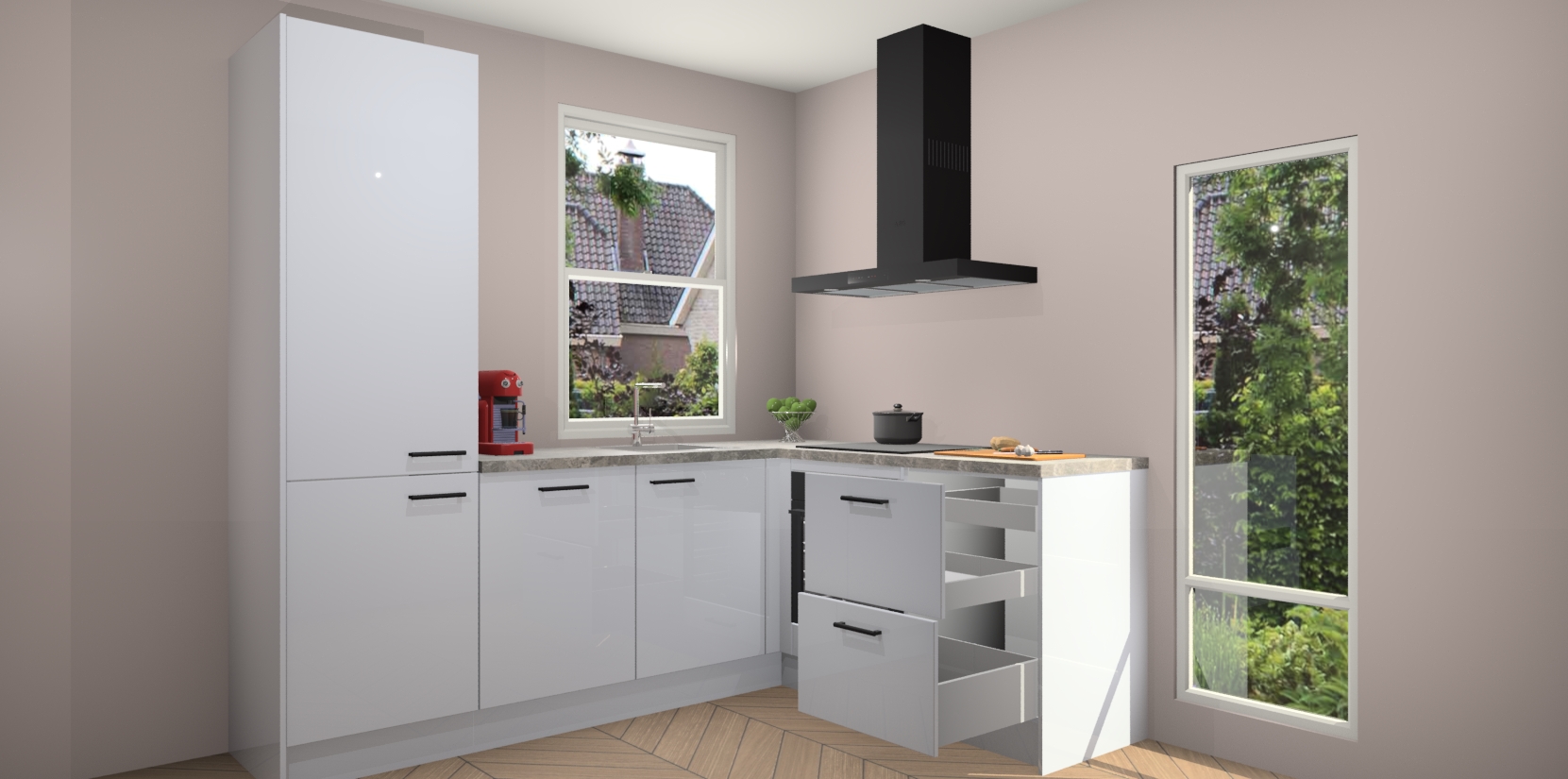 De prachtige Sneeuwwitte hoogglans keuken Phuket is de perfecte keuze als u op zoek bent naar een moderne hoekkeuken met alle luxe en comfort die u kunt verwachten! De uitstraling in het houtlook-design draagt bij aan de warme sfeer die u nu al voelt wanneer u er naar kijkt. Heeft u genoeg van ouderwetse keukens? Probeer dan direct deze moderne, mooie hoekkeukens en laat iedereen verbluft achter!