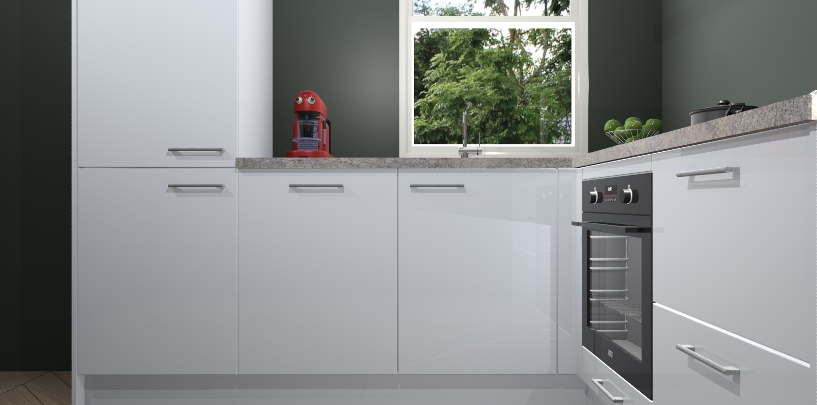De Sneeuwwitte hoogglans keuken Phuket heeft alles wat u maar kunt wensen. Niet alleen zijn er softclose deuren, maar ook 5 ingebouwde apparaten: een oven, inductiekookplaat, afzuigkap, vaatwasser en koelkast - waarbij u later gemakkelijk naar het AEG merk, van inductiekookplaat naar kookplaat met geïntegreerde afzuiging of van oven naar combimagnetron kunt upgraden. Dat alles tegen een vast laag tarief! Bovendien geeft de Sneeuwwitte hoogglans keuken Phuket supersnelle levering van 7 weken. Echt iets voor u als u er niet op wilt wachten om het resultaat te zien in eigen keuken!