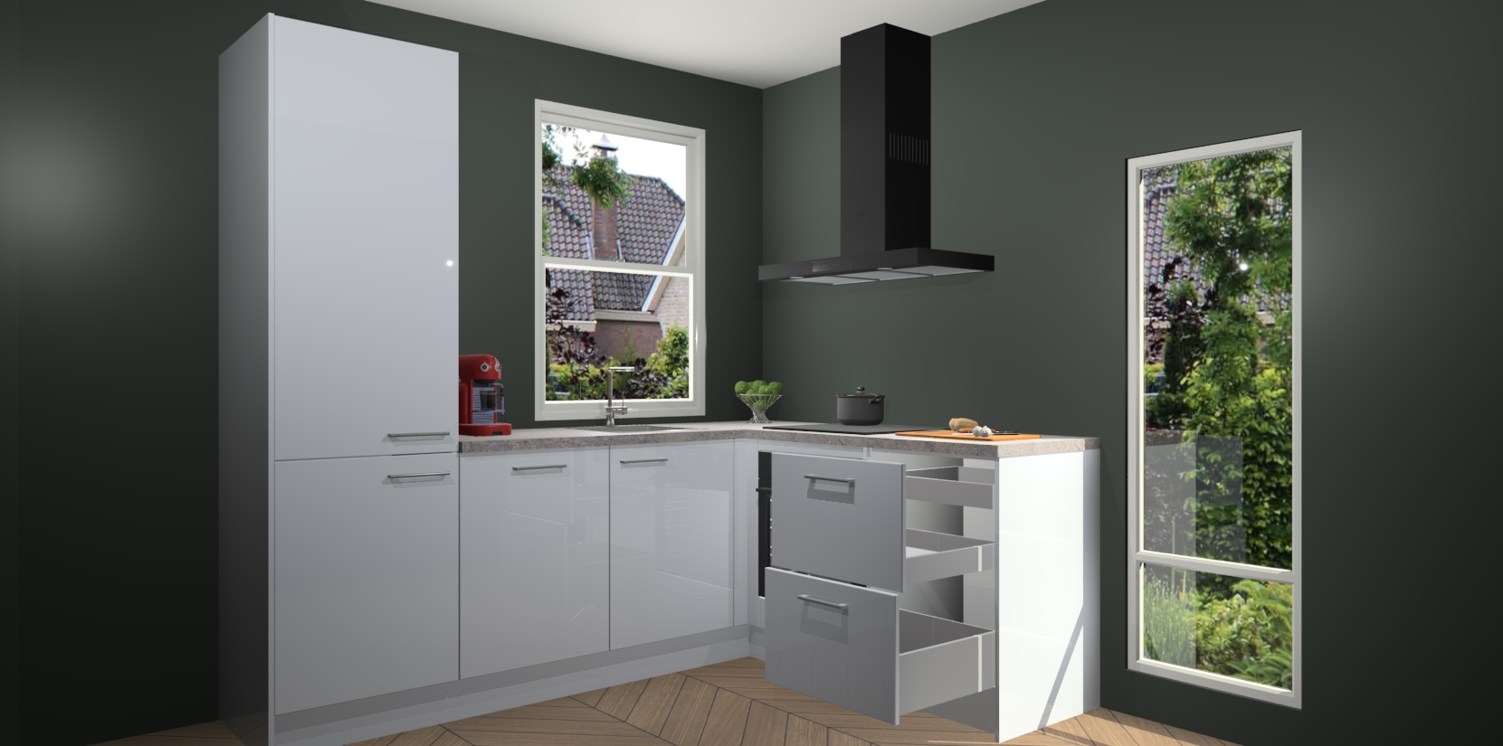 De prachtige Sneeuwwitte hoogglans keuken Phuket is de perfecte keuze als u op zoek bent naar een moderne hoekkeuken met alle luxe en comfort die u kunt verwachten! De uitstraling in het houtlook-design draagt bij aan de warme sfeer die u nu al voelt wanneer u er naar kijkt. Heeft u genoeg van ouderwetse keukens? Probeer dan direct deze moderne, mooie hoekkeukens en laat iedereen verbluft achter!