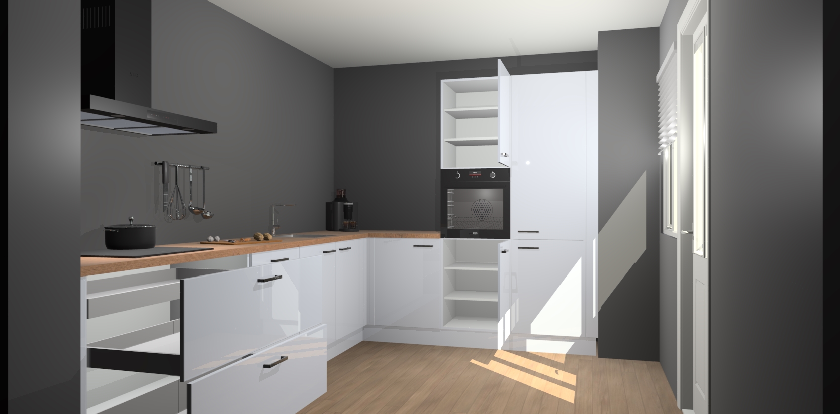 Welkom bij de Sneeuwwitte hoogglans keuken Portland. Deze prachtige keuken zal de komende jaren het middelpunt van de belangstelling in uw huis zijn. Uitgerust met vijf inbouwapparaten komt u nooit kookgereedschap tekort. Bovendien geeft de warme houtlook elke ruimte een uitnodigende en tijdloze uitstraling.