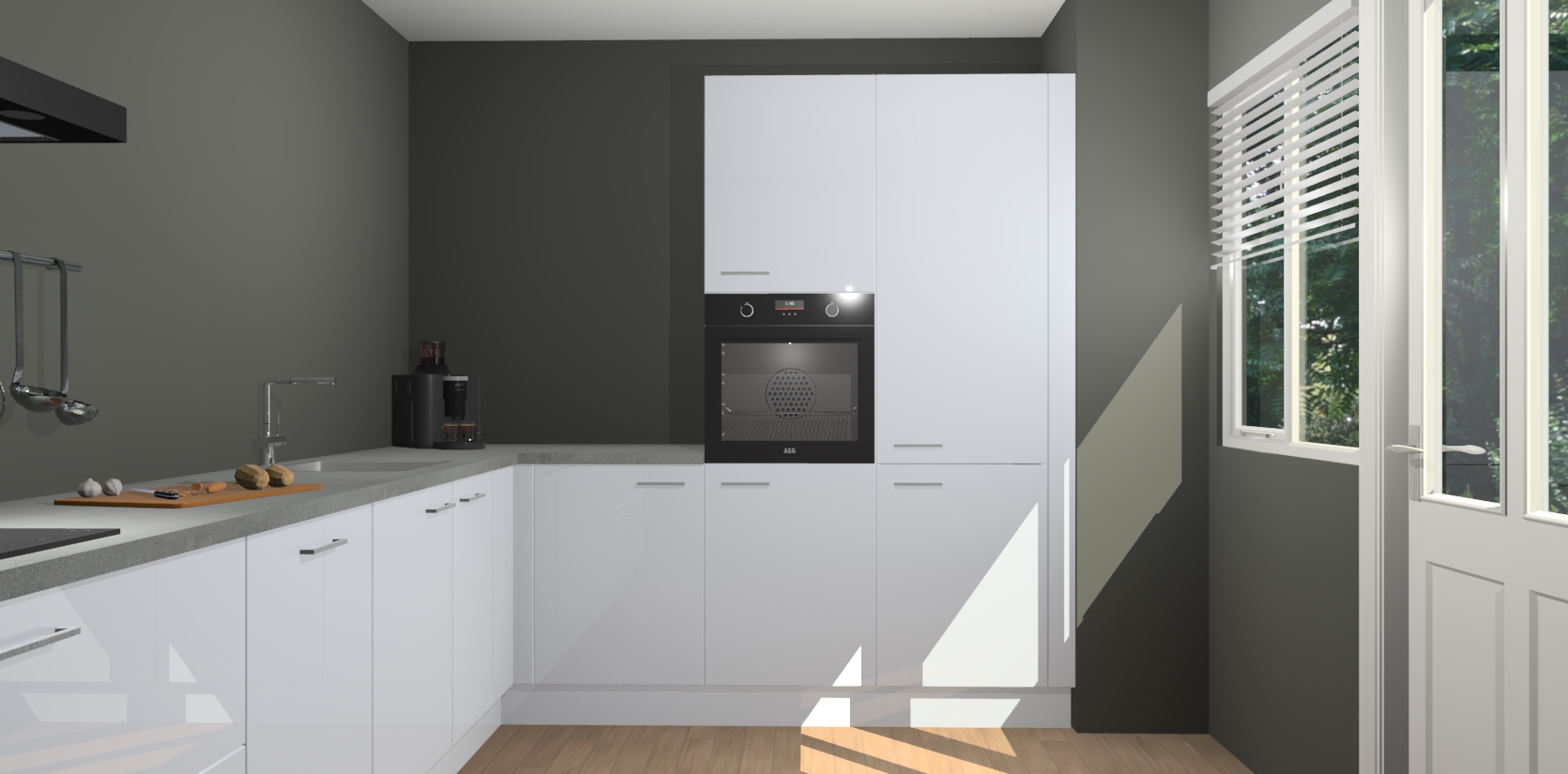 Welkom bij de Sneeuwwitte hoogglans keuken Portland. Deze prachtige keuken zal de komende jaren het middelpunt van de belangstelling in uw huis zijn. Uitgerust met vijf inbouwapparaten komt u nooit kookgereedschap tekort. Bovendien geeft de warme houtlook elke ruimte een uitnodigende en tijdloze uitstraling.