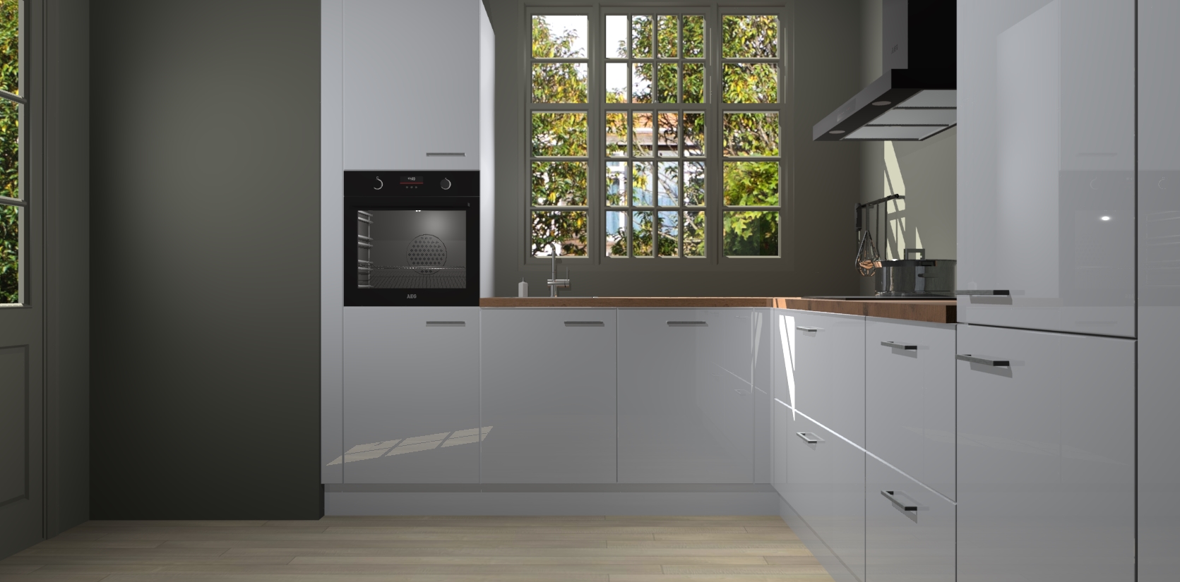 Met een modern, tijdloos design en ruime opslagruimte, zult u zich in no-time thuis voelen in uw nieuwe keuken. Uw leven wordt eenvoudiger met de soft-close deuren die voor het ultieme stille comfort zorgen - geen geluid dat u stoort terwijl u kookt. Ook is de keuken voorzien van 5 ingebouwde apparaten: een oven, inductie kookplaat, afzuigkap, vaatwasser en koelkast. Deze kunnen gemakkelijk na bestelling worden bijgewerkt naar AEG - waardoor uw luxe ervaring compleet is.