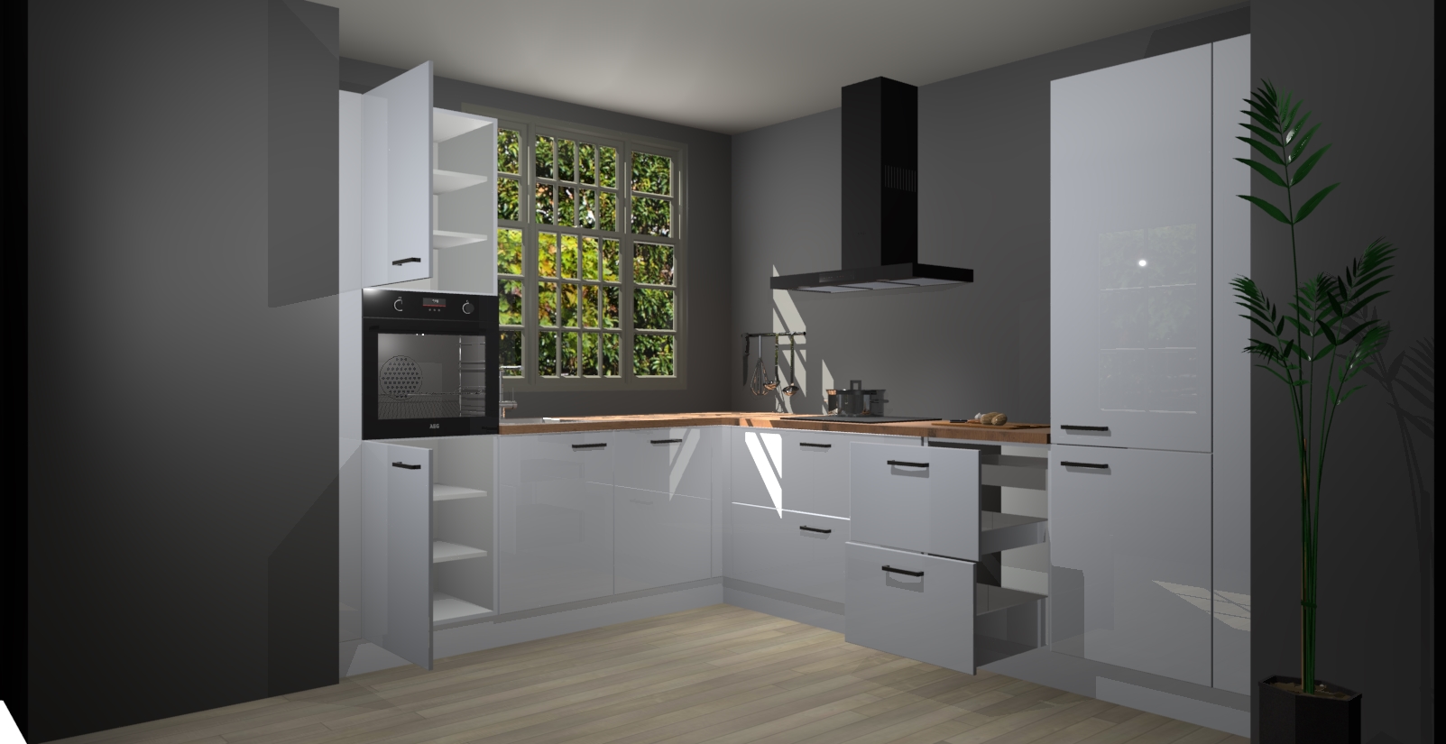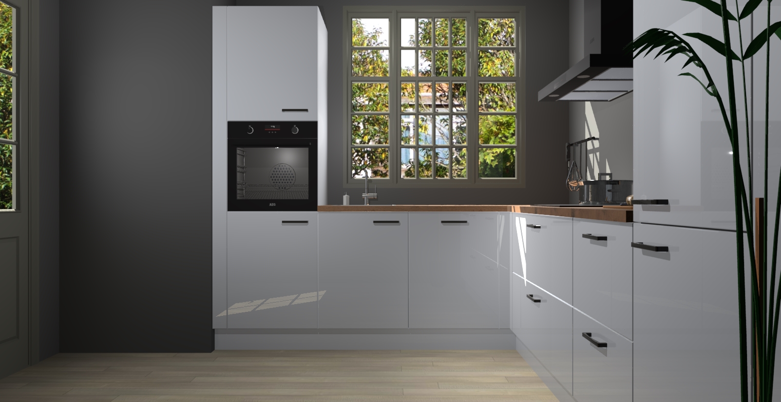 Met een modern, tijdloos design en ruime opslagruimte, zult u zich in no-time thuis voelen in uw nieuwe keuken. Uw leven wordt eenvoudiger met de soft-close deuren die voor het ultieme stille comfort zorgen - geen geluid dat u stoort terwijl u kookt. Ook is de keuken voorzien van 5 ingebouwde apparaten: een oven, inductie kookplaat, afzuigkap, vaatwasser en koelkast. Deze kunnen gemakkelijk na bestelling worden bijgewerkt naar AEG - waardoor uw luxe ervaring compleet is.