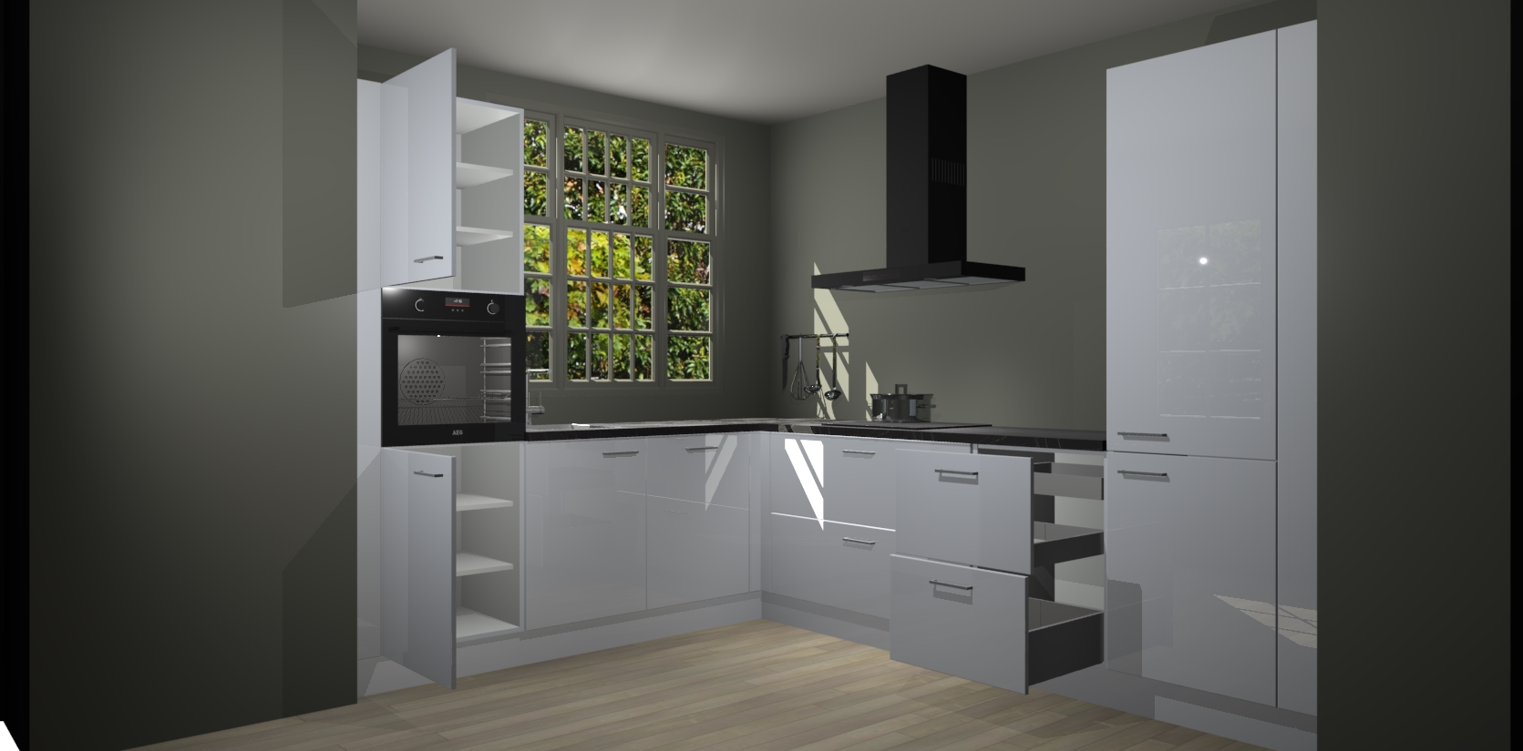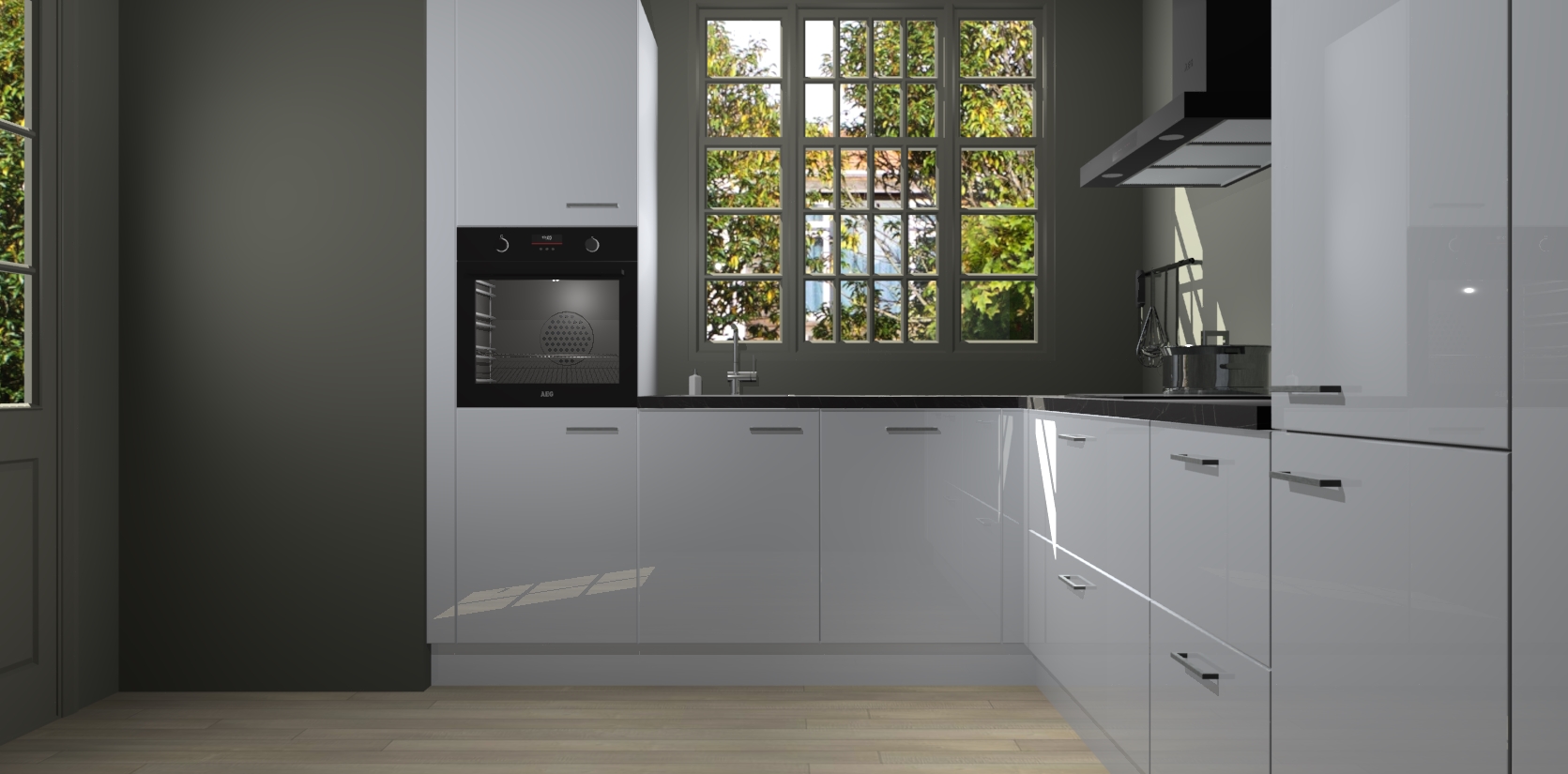 Met een modern, tijdloos design en ruime opslagruimte, zult u zich in no-time thuis voelen in uw nieuwe keuken. Uw leven wordt eenvoudiger met de soft-close deuren die voor het ultieme stille comfort zorgen - geen geluid dat u stoort terwijl u kookt. Ook is de keuken voorzien van 5 ingebouwde apparaten: een oven, inductie kookplaat, afzuigkap, vaatwasser en koelkast. Deze kunnen gemakkelijk na bestelling worden bijgewerkt naar AEG - waardoor uw luxe ervaring compleet is.