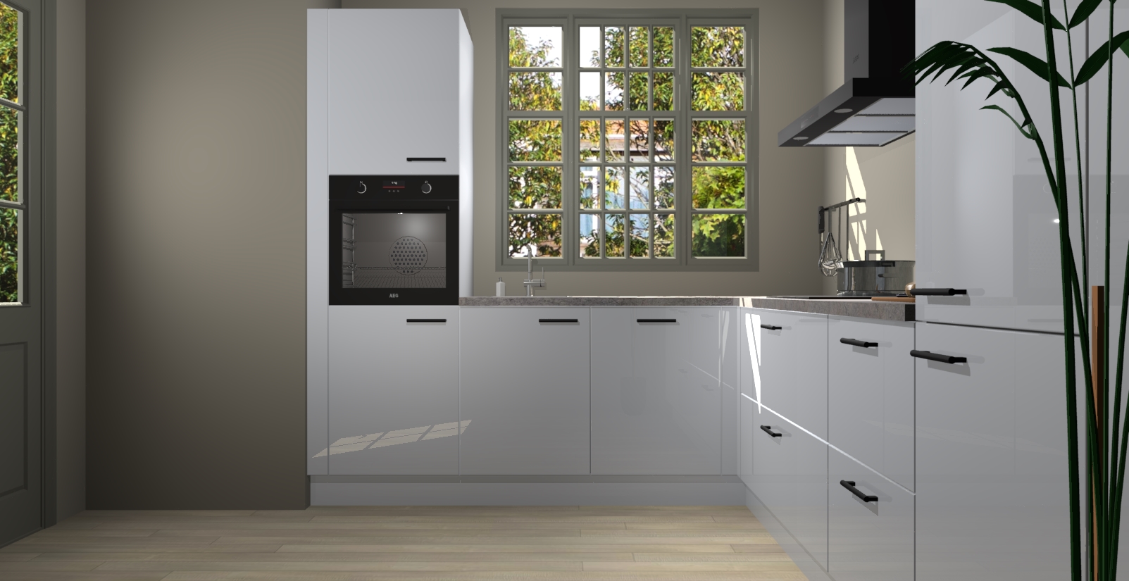 Met een modern, tijdloos design en ruime opslagruimte, zult u zich in no-time thuis voelen in uw nieuwe keuken. Uw leven wordt eenvoudiger met de soft-close deuren die voor het ultieme stille comfort zorgen - geen geluid dat u stoort terwijl u kookt. Ook is de keuken voorzien van 5 ingebouwde apparaten: een oven, inductie kookplaat, afzuigkap, vaatwasser en koelkast. Deze kunnen gemakkelijk na bestelling worden bijgewerkt naar AEG - waardoor uw luxe ervaring compleet is.