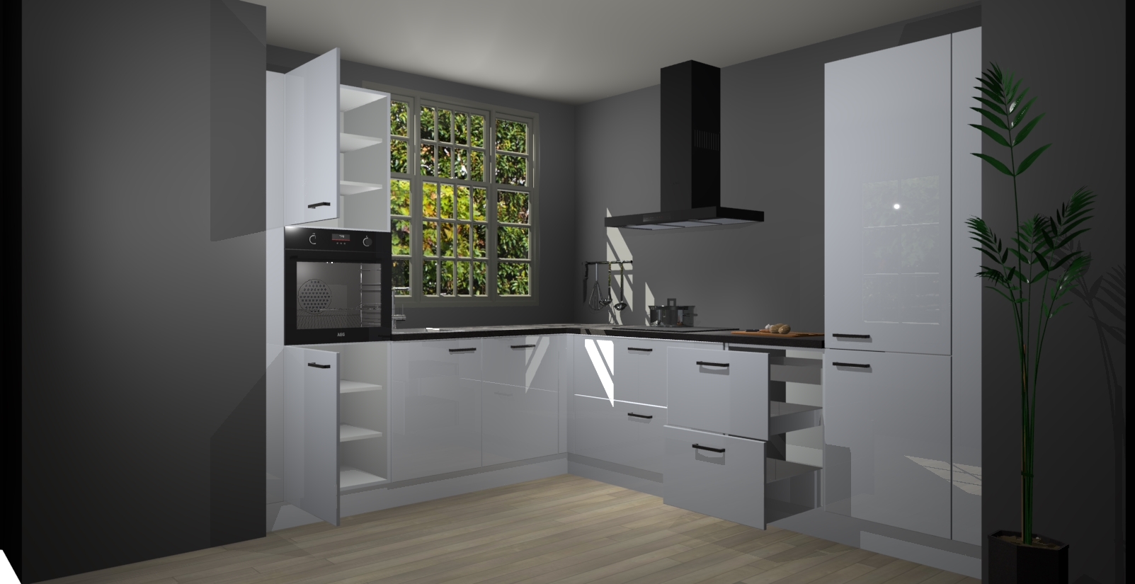 Met een modern, tijdloos design en ruime opslagruimte, zult u zich in no-time thuis voelen in uw nieuwe keuken. Uw leven wordt eenvoudiger met de soft-close deuren die voor het ultieme stille comfort zorgen - geen geluid dat u stoort terwijl u kookt. Ook is de keuken voorzien van 5 ingebouwde apparaten: een oven, inductie kookplaat, afzuigkap, vaatwasser en koelkast. Deze kunnen gemakkelijk na bestelling worden bijgewerkt naar AEG - waardoor uw luxe ervaring compleet is.