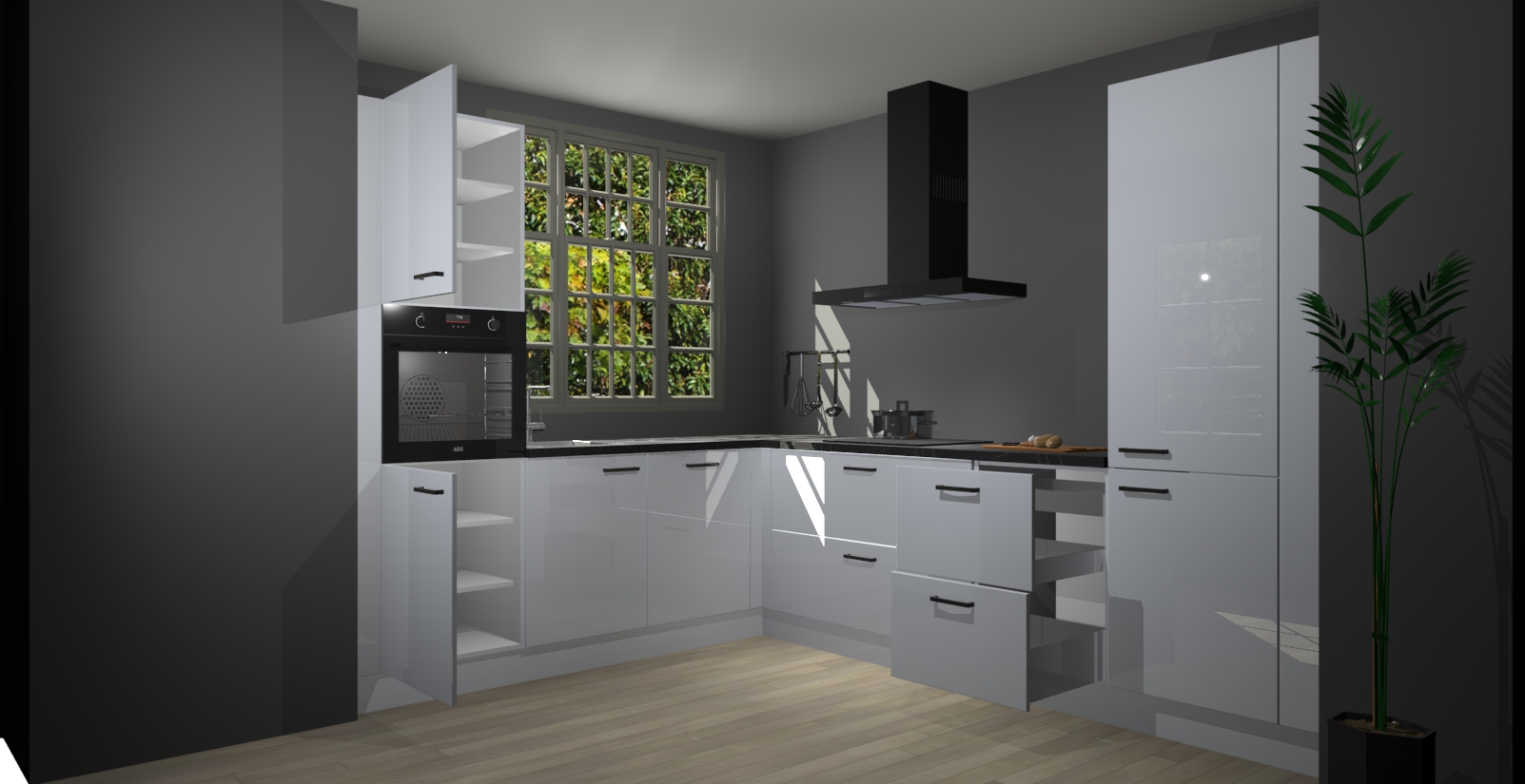 Met een modern, tijdloos design en ruime opslagruimte, zult u zich in no-time thuis voelen in uw nieuwe keuken. Uw leven wordt eenvoudiger met de soft-close deuren die voor het ultieme stille comfort zorgen - geen geluid dat u stoort terwijl u kookt. Ook is de keuken voorzien van 5 ingebouwde apparaten: een oven, inductie kookplaat, afzuigkap, vaatwasser en koelkast. Deze kunnen gemakkelijk na bestelling worden bijgewerkt naar AEG - waardoor uw luxe ervaring compleet is.