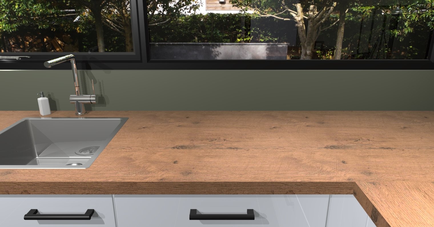- Bij een hoekwerkblad zijn de hoeken in gevreesd en op maat gemaakt