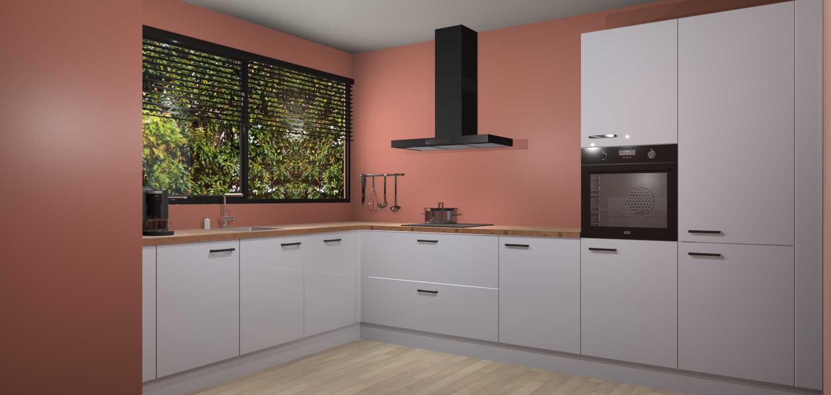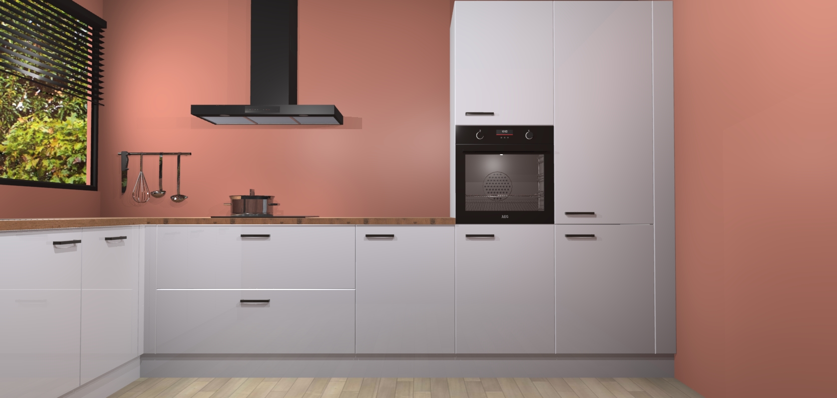 Met een modern, tijdloos design en ruime opslagruimte, zult u zich in no-time thuis voelen in uw nieuwe keuken. Uw leven wordt eenvoudiger met de soft-close deuren die voor het ultieme stille comfort zorgen - geen geluid dat u stoort terwijl u kookt. Ook is de keuken voorzien van 5 ingebouwde apparaten: een oven, inductie kookplaat, afzuigkap, vaatwasser en koelkast. Deze kunnen gemakkelijk na bestelling worden bijgewerkt naar AEG - waardoor uw luxe ervaring compleet is.