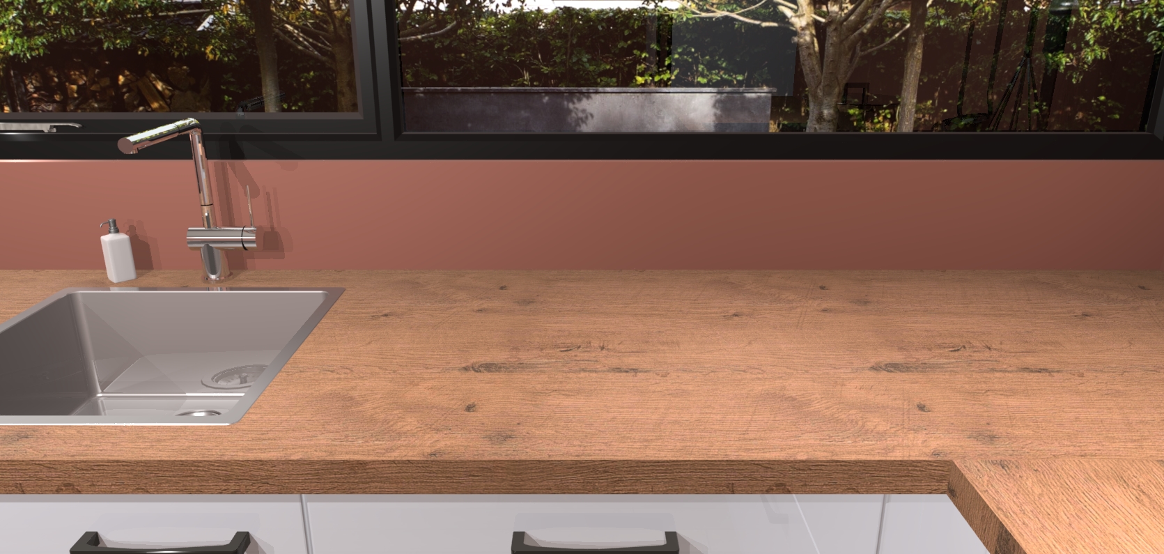 - Bij een hoekwerkblad zijn de hoeken in gevreesd en op maat gemaakt